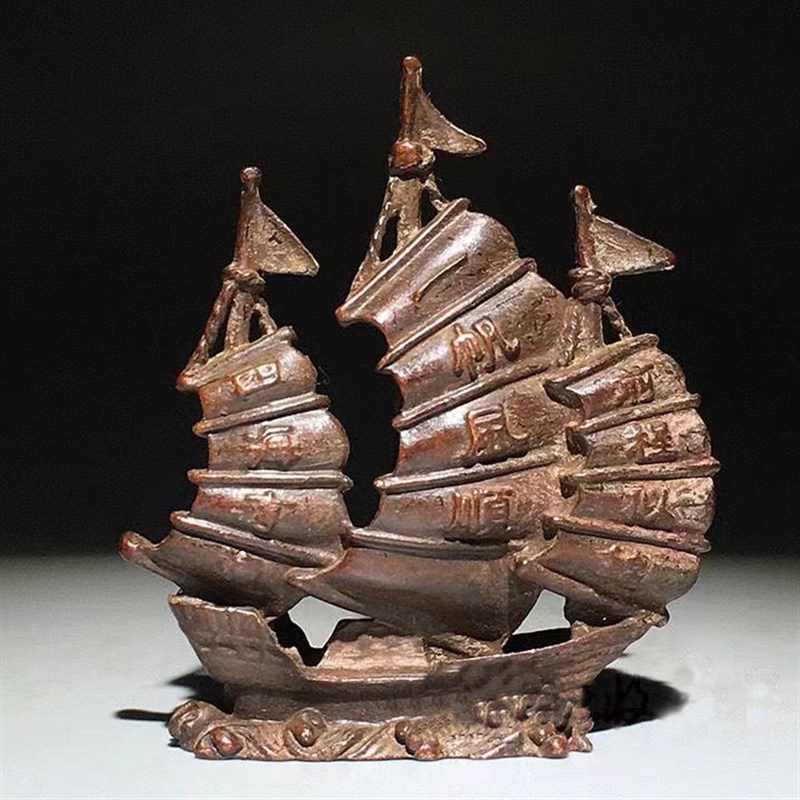 速发古玩铜器旧货老铜一帆风顺前程似锦帆船桌面家居装饰摆件老铜