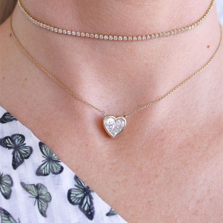 TENCOO【清澈之心】包镶心形钻石项链小众高级感饰品