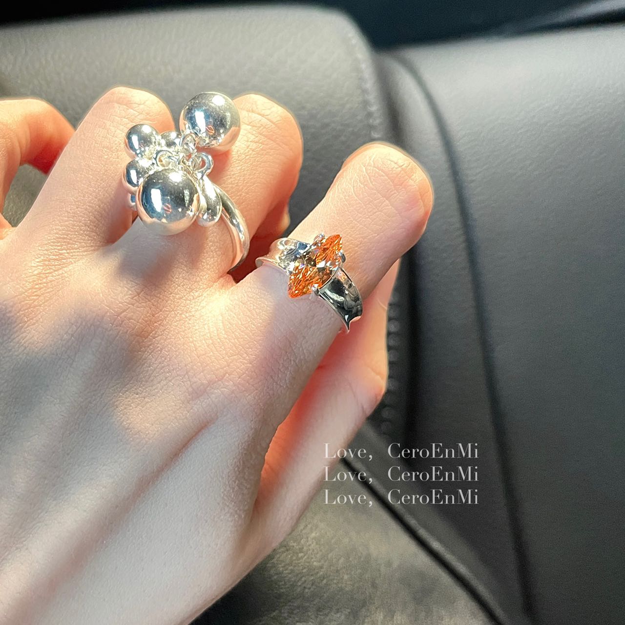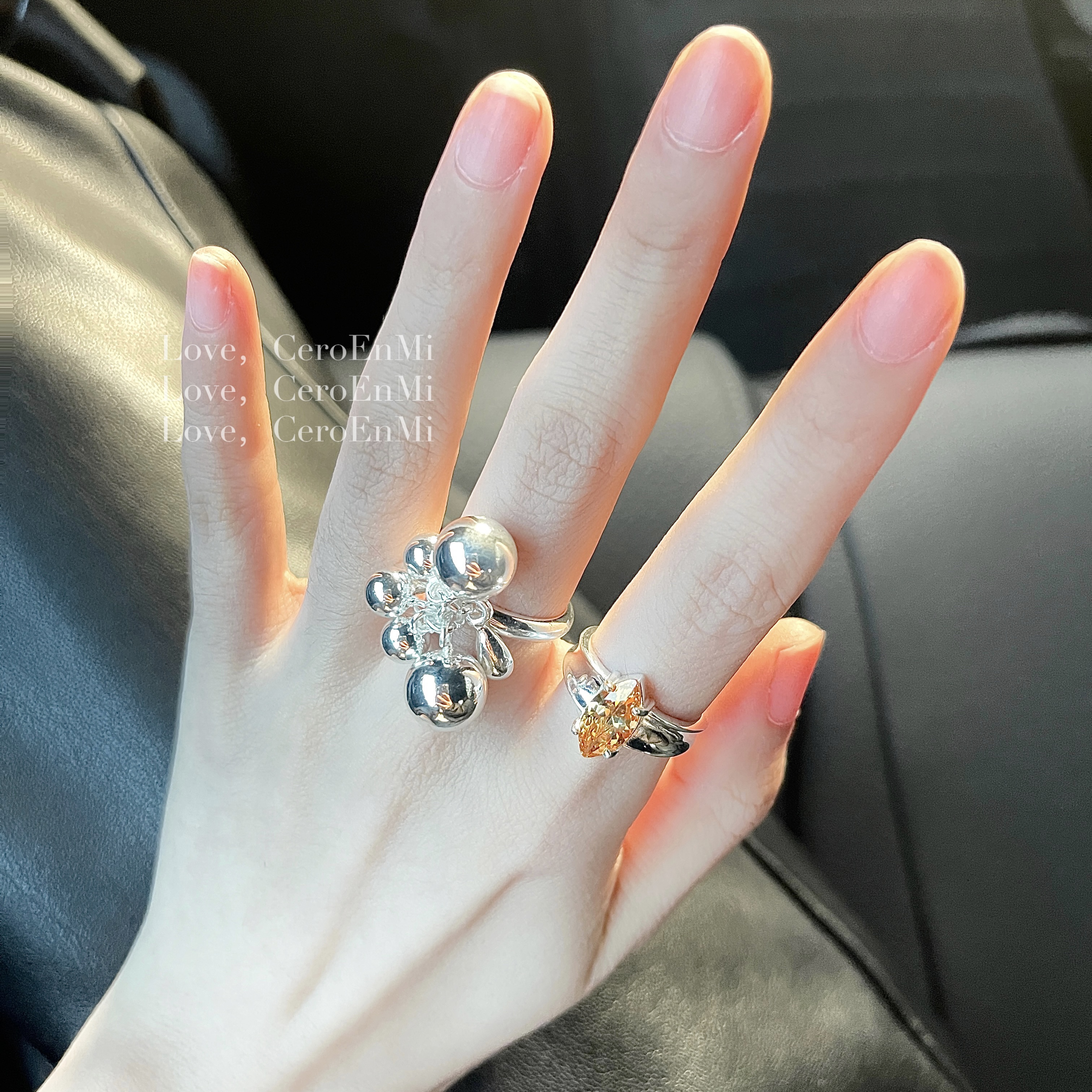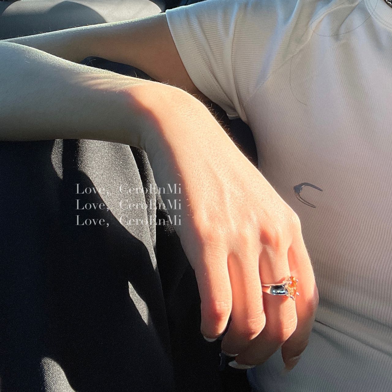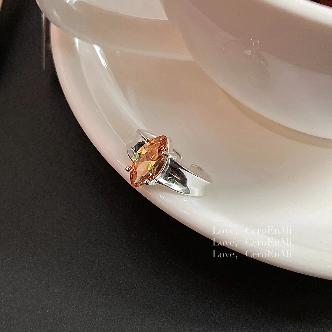 CeroEnMi s925银镶嵌锆石马眼黄钻开口戒指女