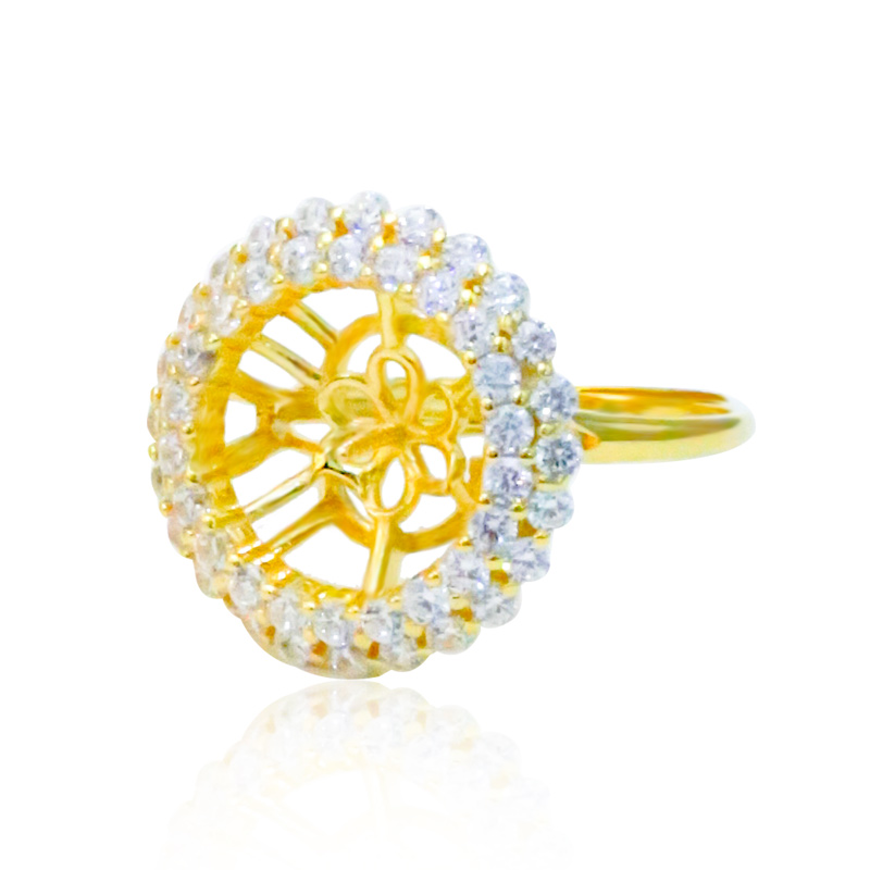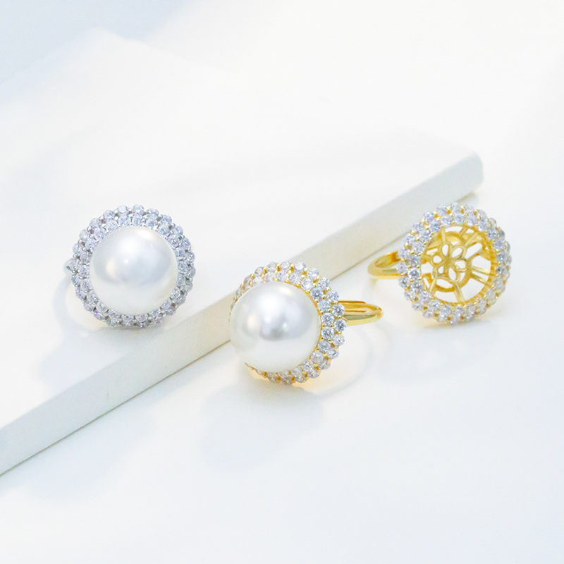 925纯银太阳花扁珠珍珠戒指空托diy配件指环活口调节蜜蜡玉石戒托