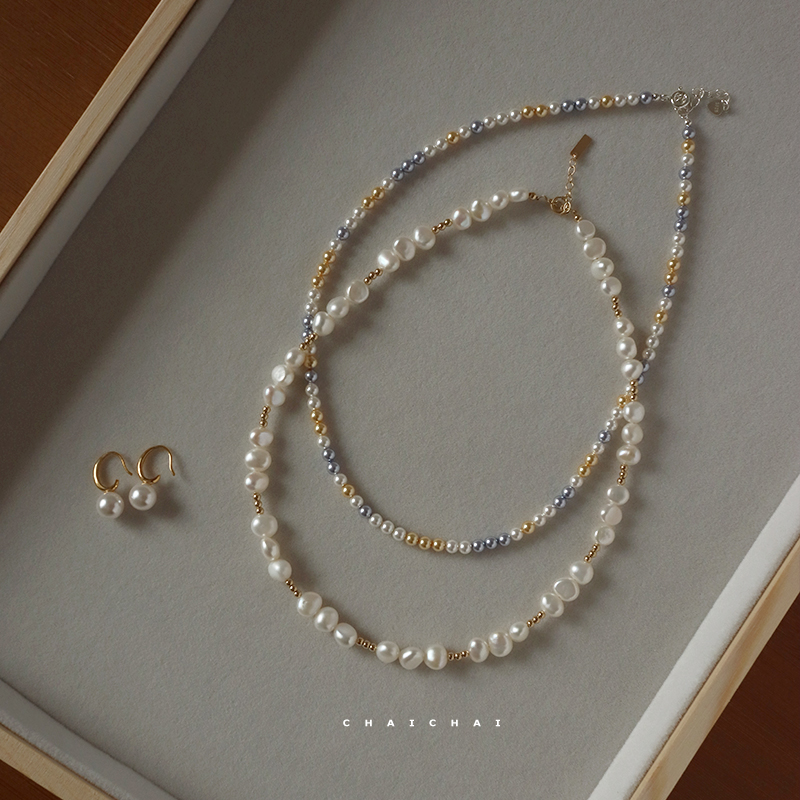 原创手工天然巴洛克真珍珠项链小众轻奢串珠个性14k包金短毛衣链