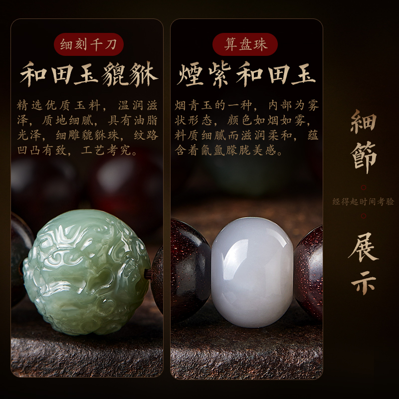 小叶紫檀手串男士和田玉貔貅文玩佛珠盘玩檀木质真品手链七夕礼物