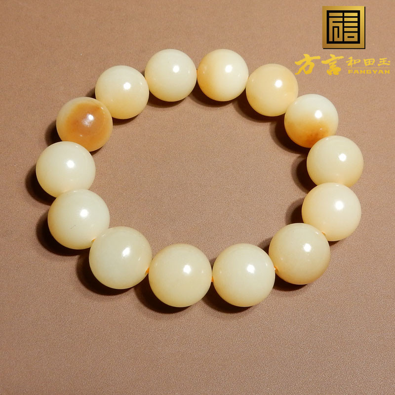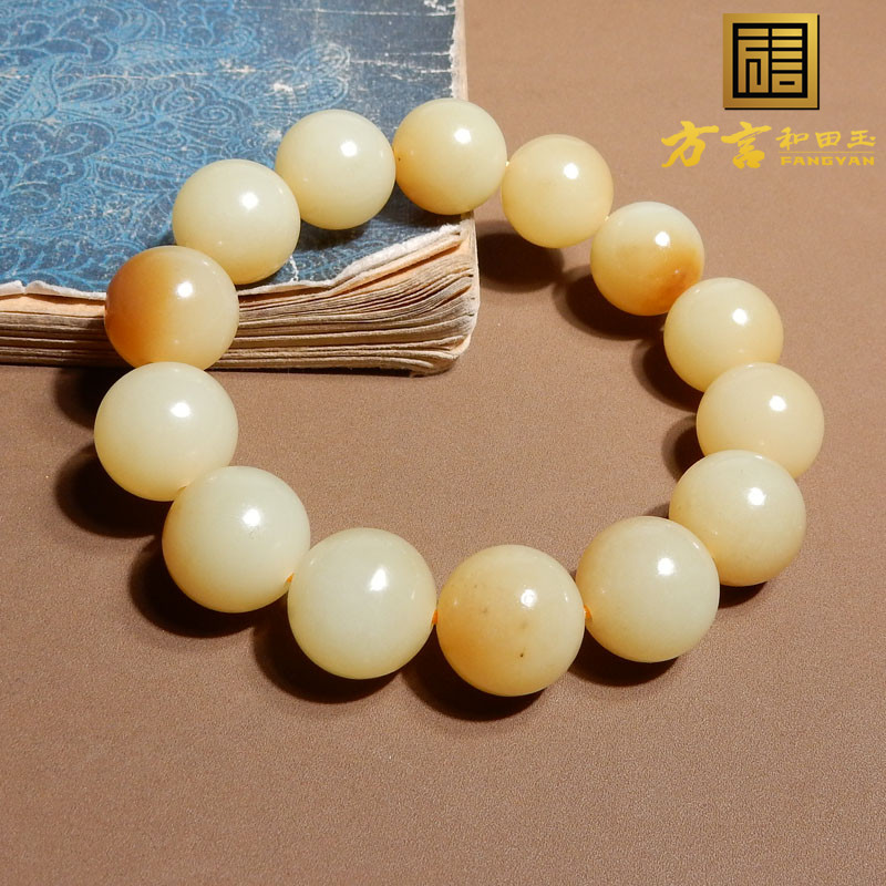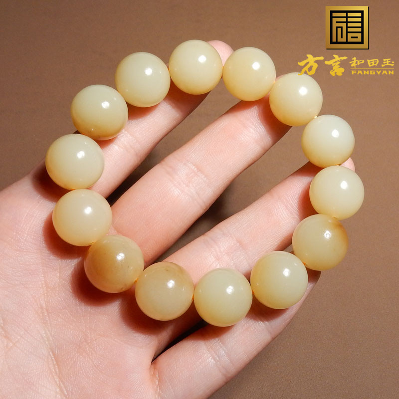 抢疯了方言和田玉新疆且末料油润细腻高脂黄口带糖15mm圆珠手链h7