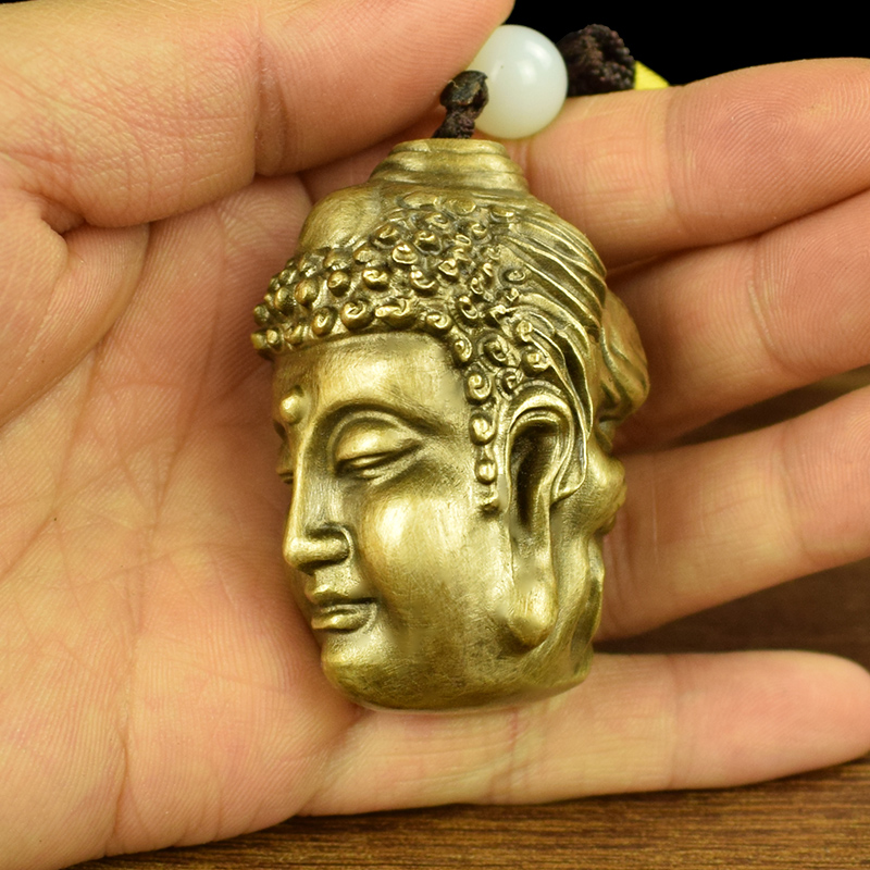 铜实心一念之间佛头手把件佛魔把件随身文玩挂件工艺品收藏把玩