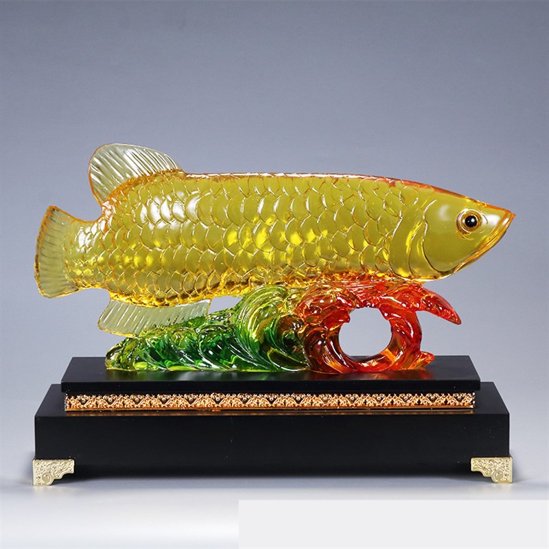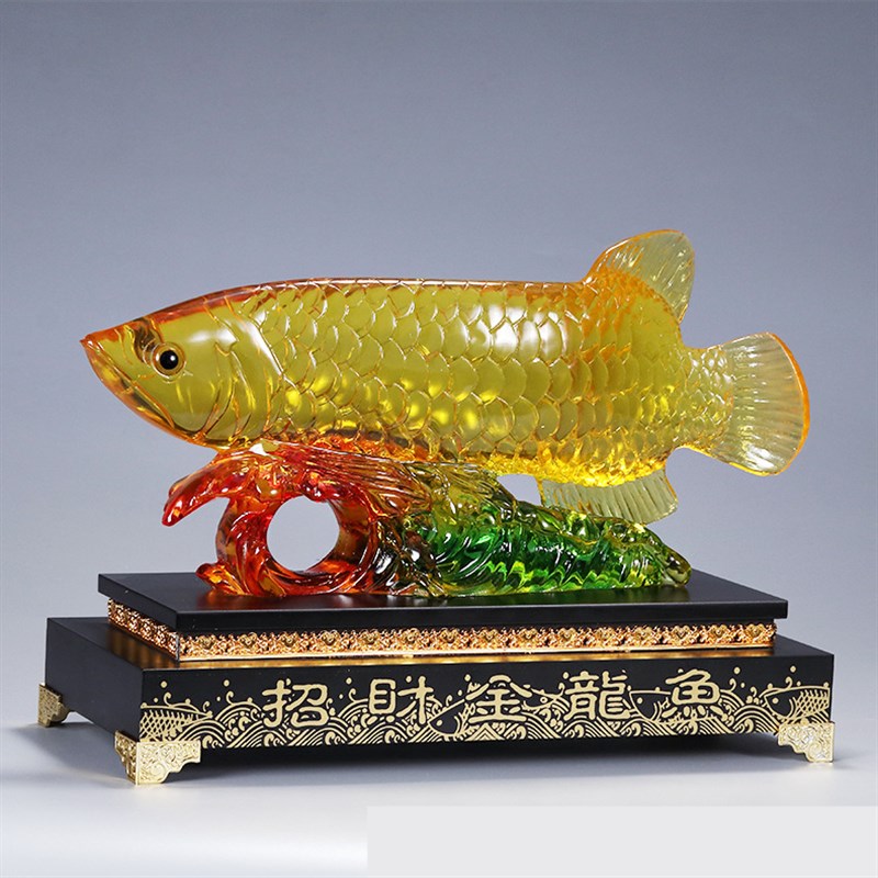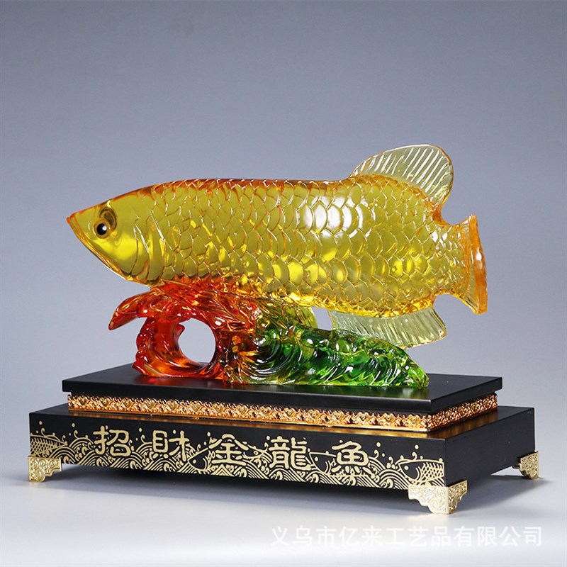 琉璃招财金龙鱼摆件 树脂家居客厅装饰品 办公室摆设开业乔迁送礼