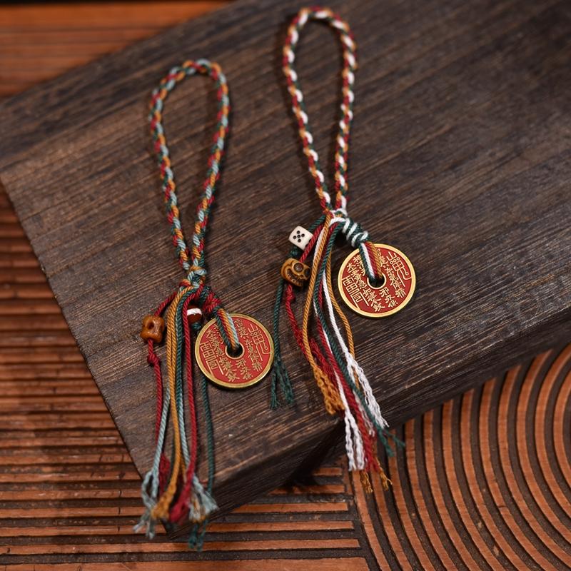 藏式编织山鬼花钱挂件铜钱包挂钥匙扣