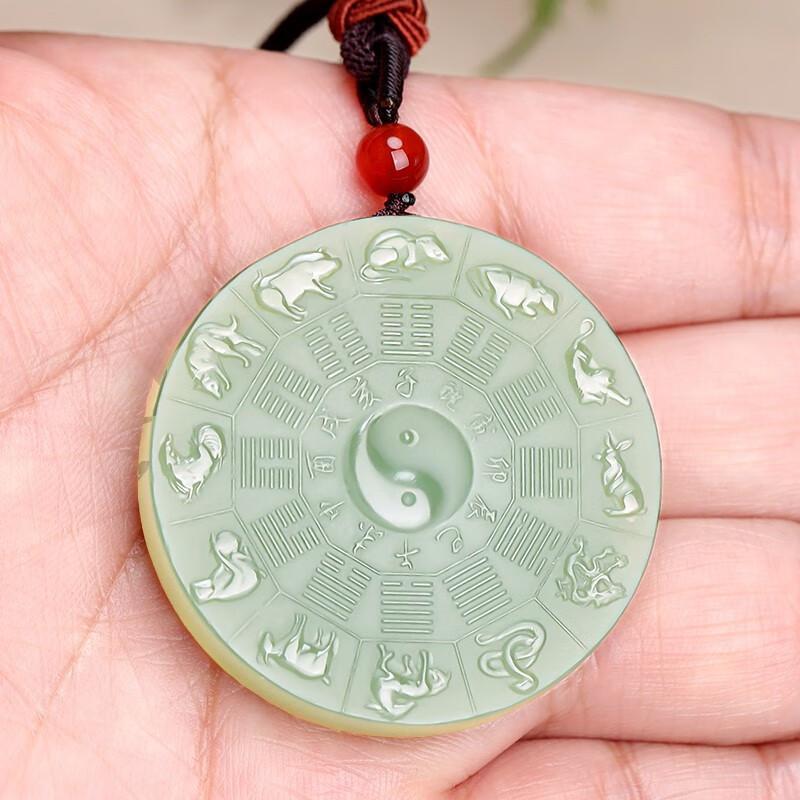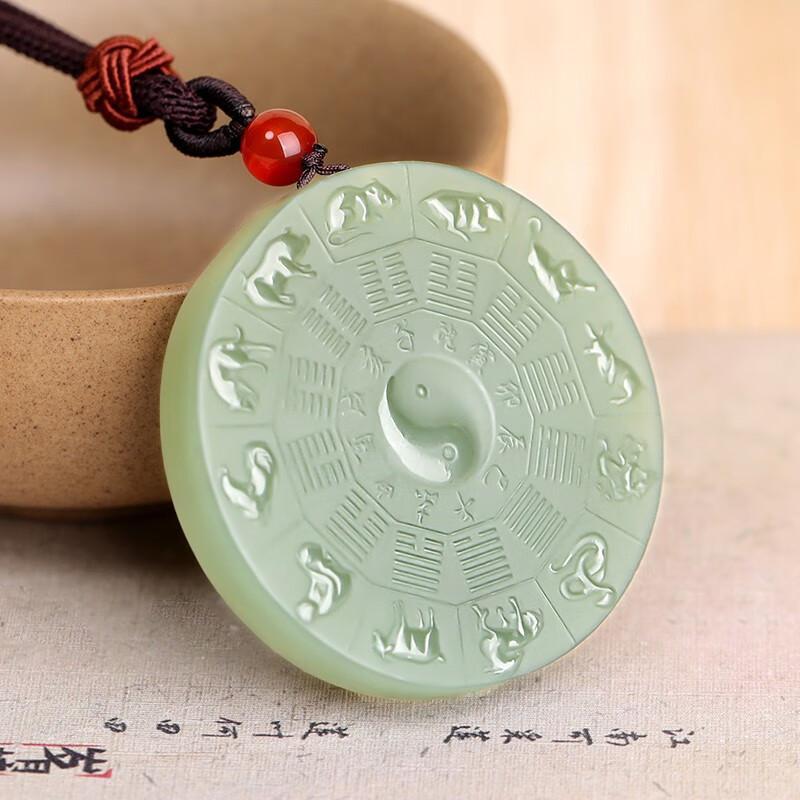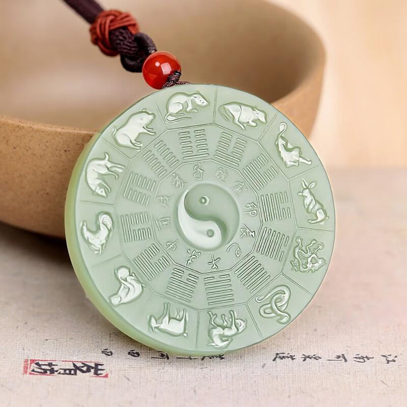 玉挂件太极新疆本命年八卦十二生肖天然玉吊阴阳玉石九宫坠青白色