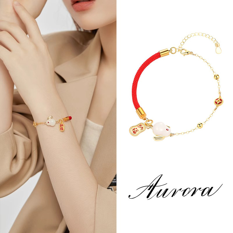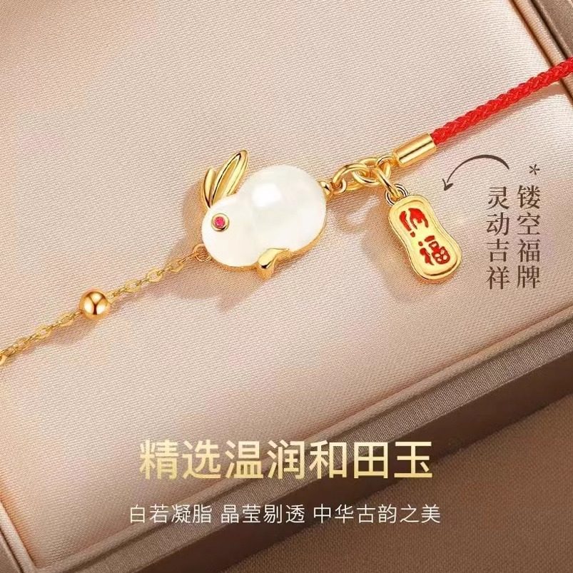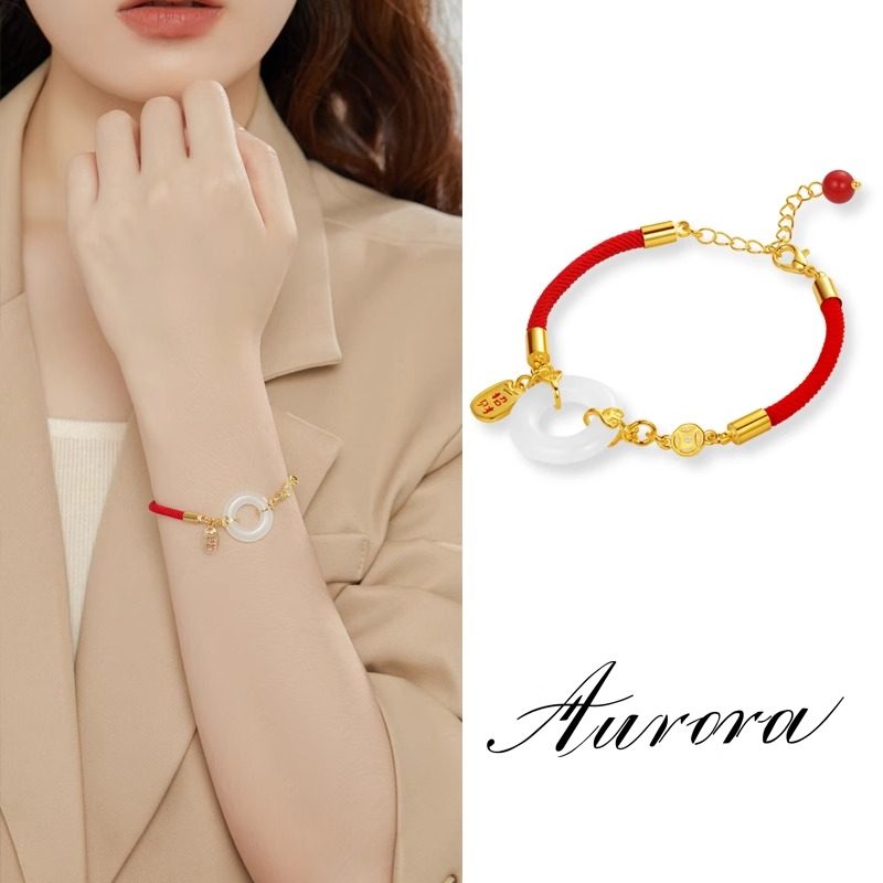和田玉平安扣红绳手链女龙年本命年手串轻奢小众新年送女朋友礼物