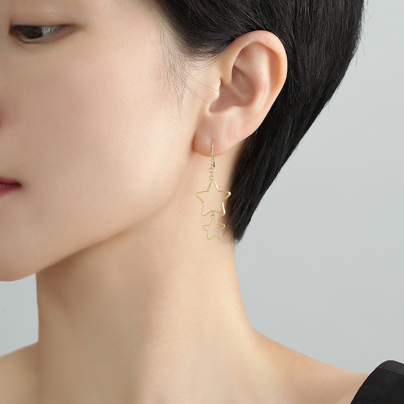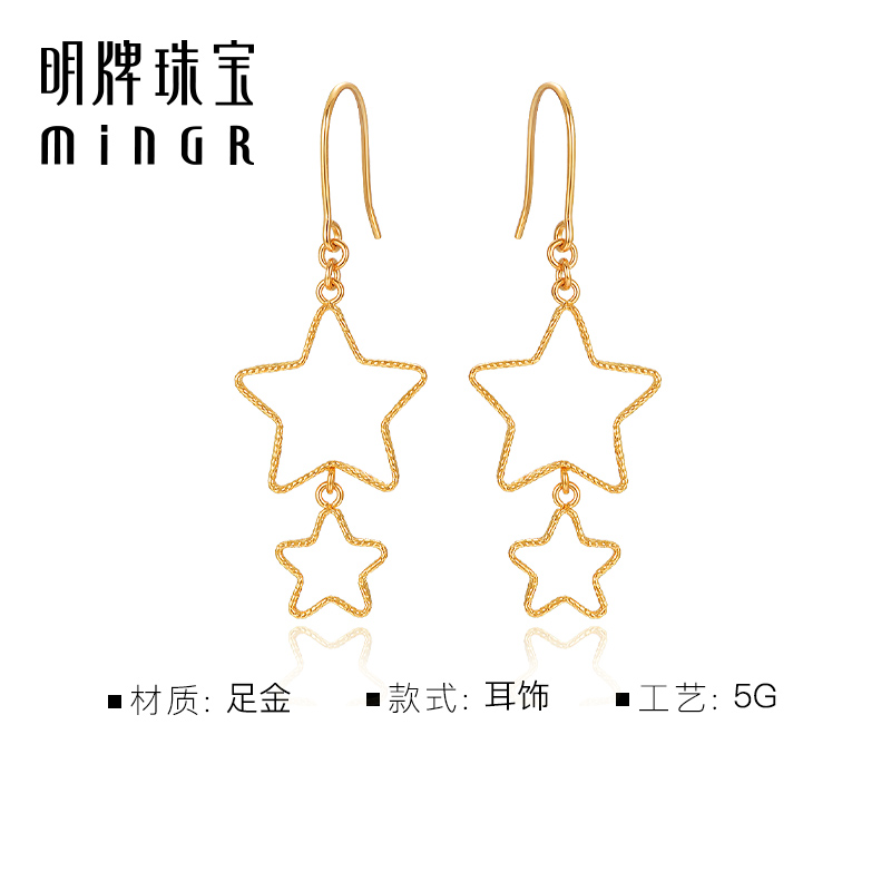 明牌珠宝5G黄金双子星耳饰t足金简约大方星星耳钩生日礼物AFH0374
