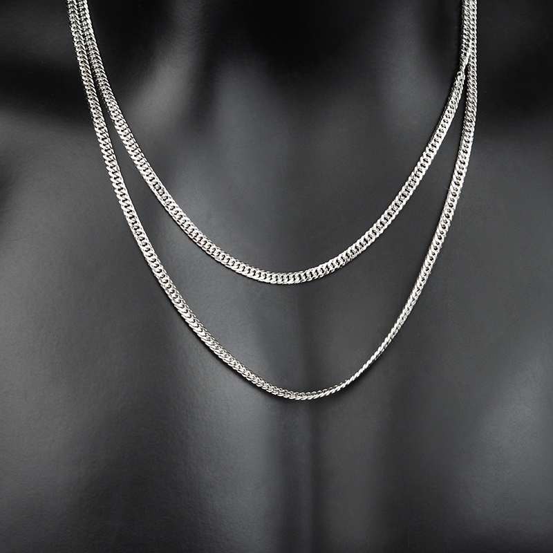S925 silver cuban chain 纯银镀白金古巴项链男女高品质锁骨链潮