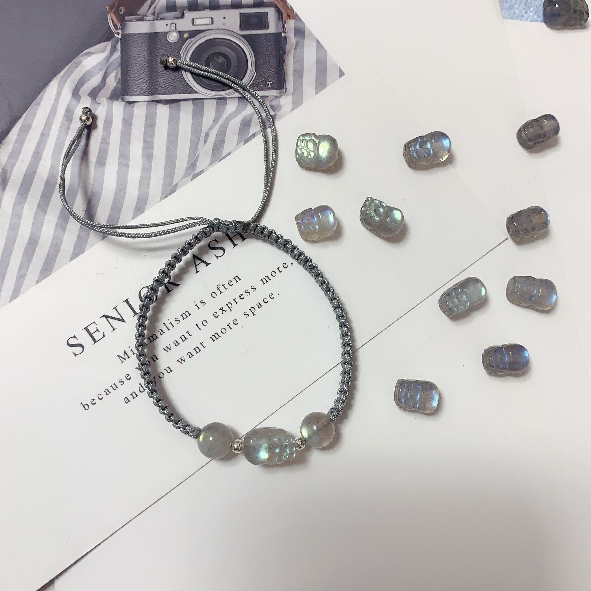 灰月光石貔貅手链女手工编织绳拉长石学生手串饰品生日礼物
