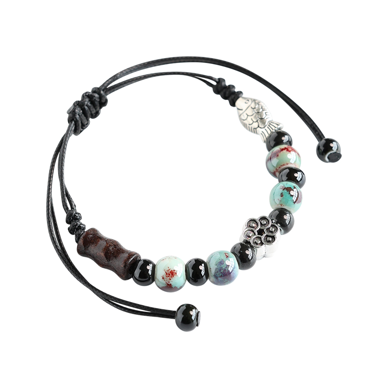 民族风陶瓷手链景德镇瓷珠编织手串锦鲤情侣手绳新中式古风串珠女