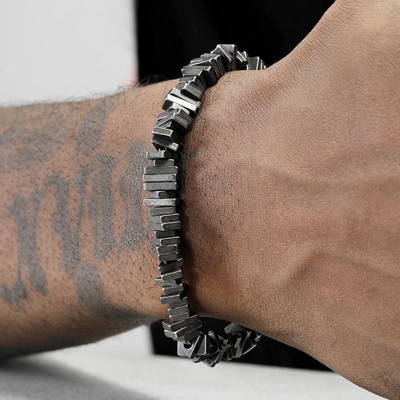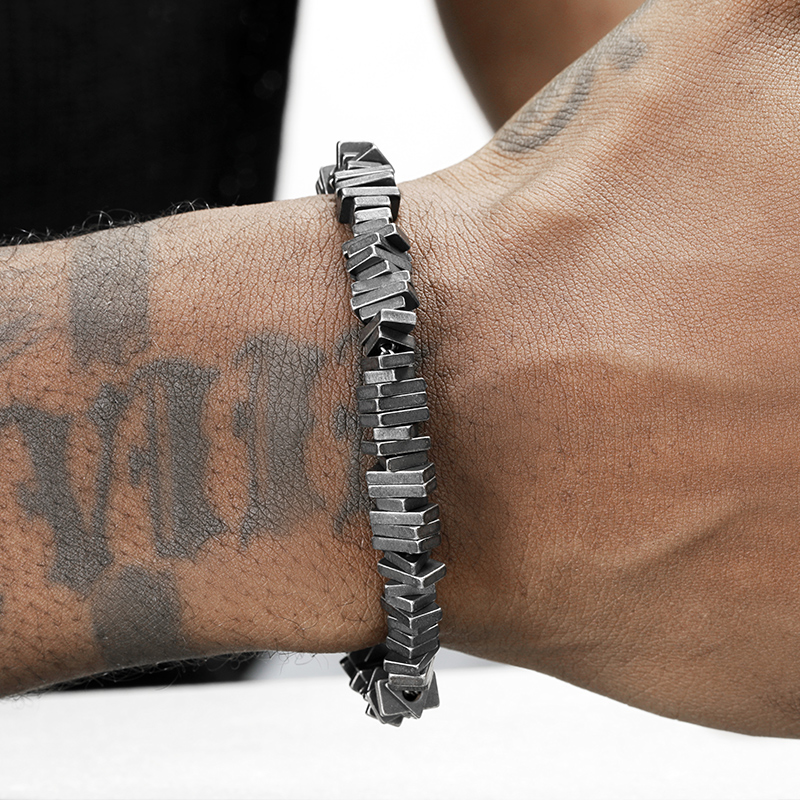 GRGR做旧串珠手链男嘻哈欧美复古潮流个性不规则方块拼接手串手环