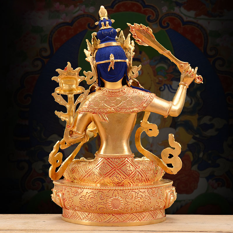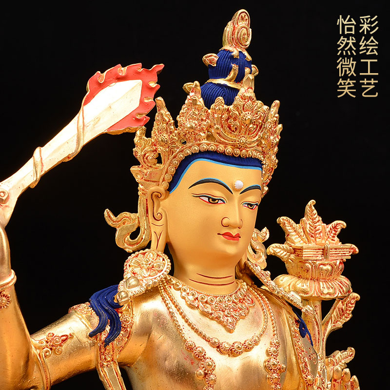 文殊菩萨铜像室内家用现代客厅摆件铜10寸鎏金观音菩萨