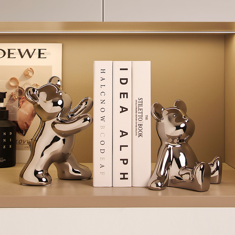 贝汉美暴力熊书立客厅装饰品摆件轻奢高档桌面书房电视柜陶瓷书档