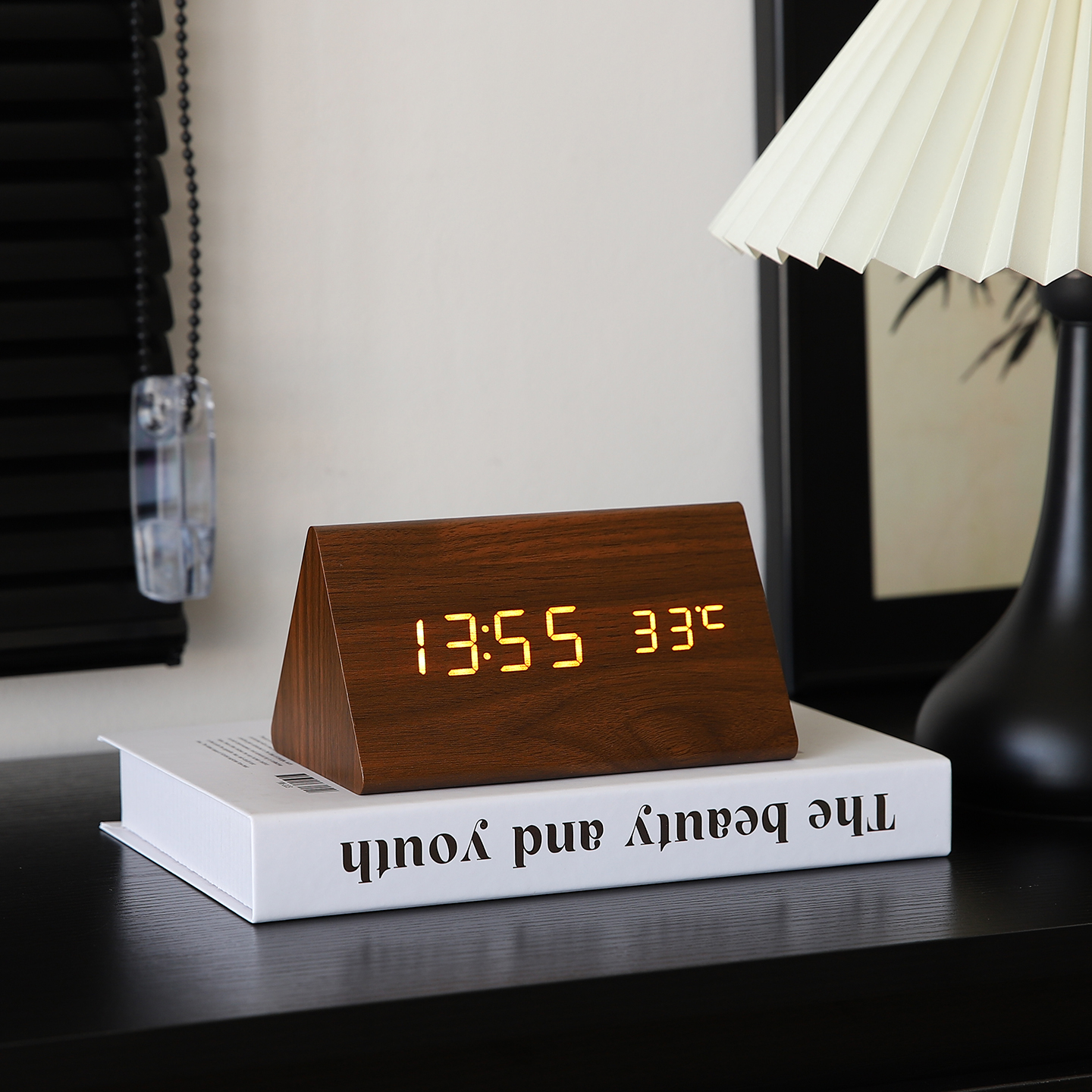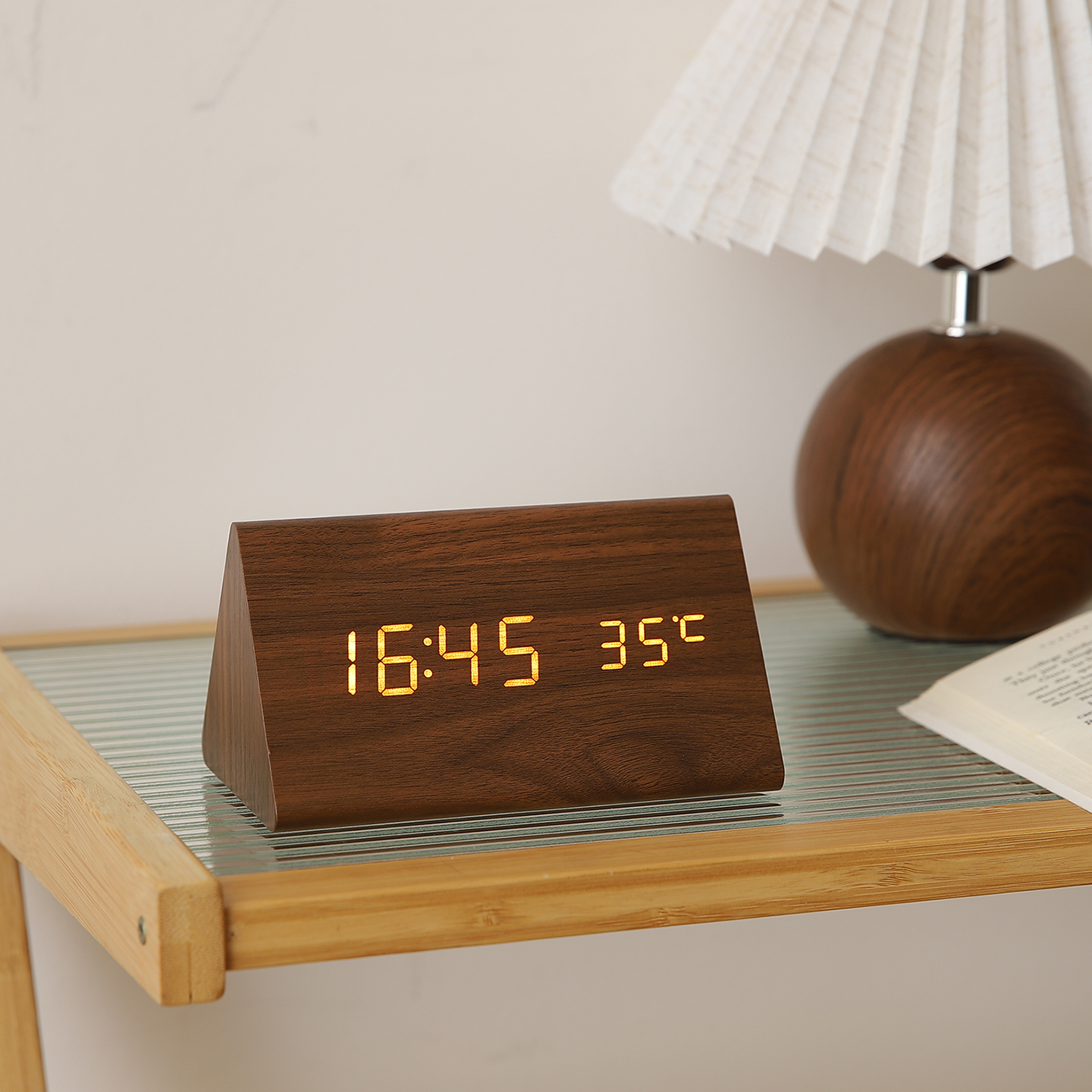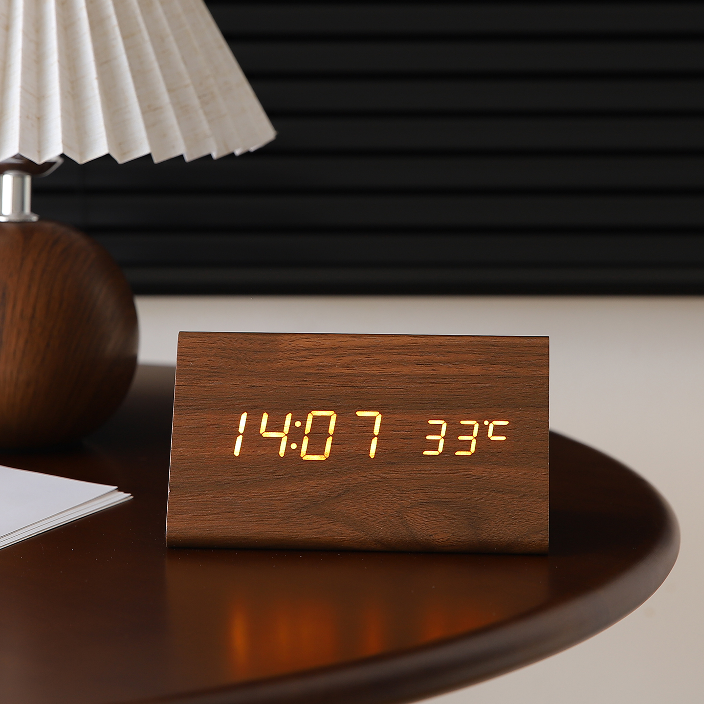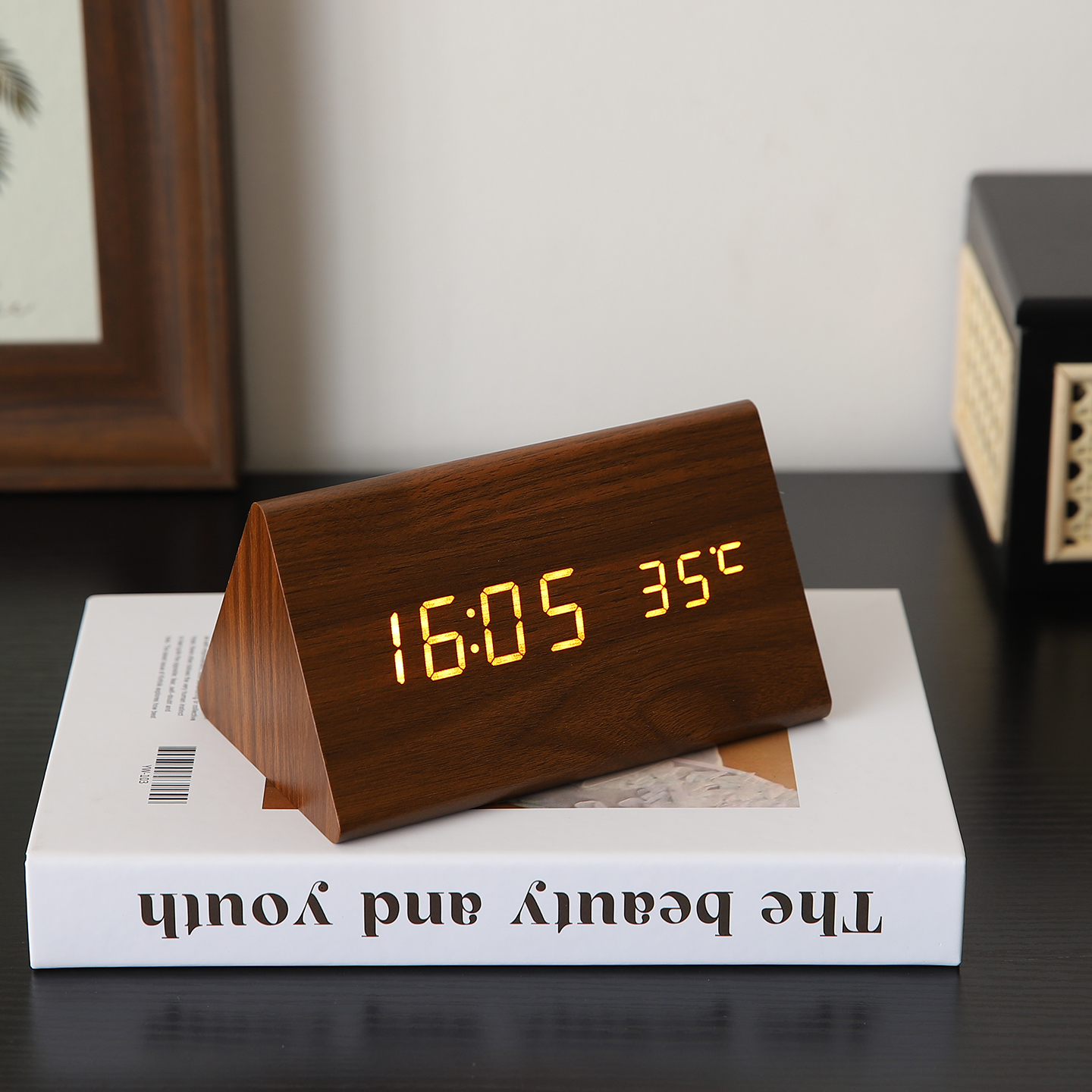 复古木质桌面电子时钟摆件办公室钟表摆台式客厅床头柜家居装饰品