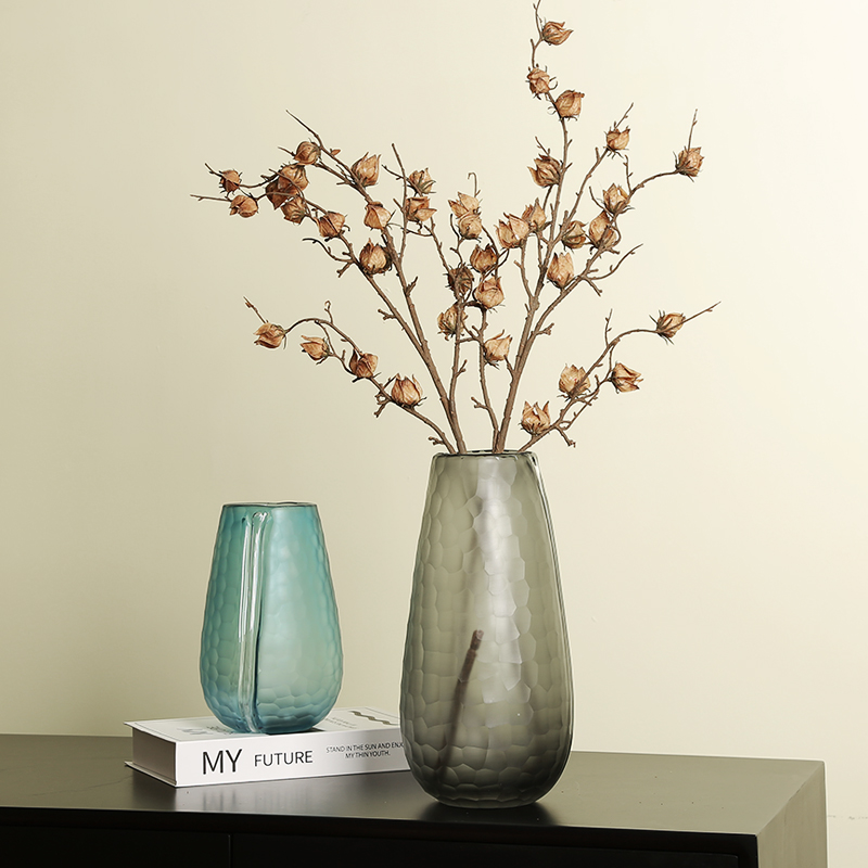 现代简约艺术玻璃磨刻花瓶轻奢摆件客厅茶几电视柜U可水培花器装