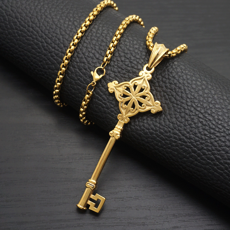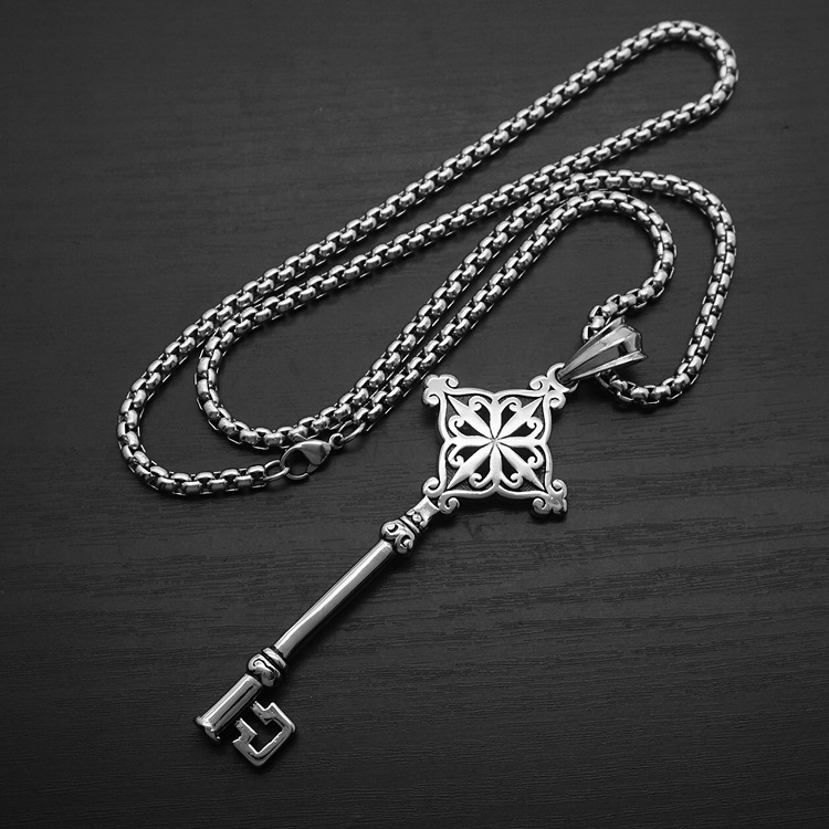 跨境欧美个性复古大号钥匙吊坠朋克嘻哈长款毛衣链潮男女钛钢项链