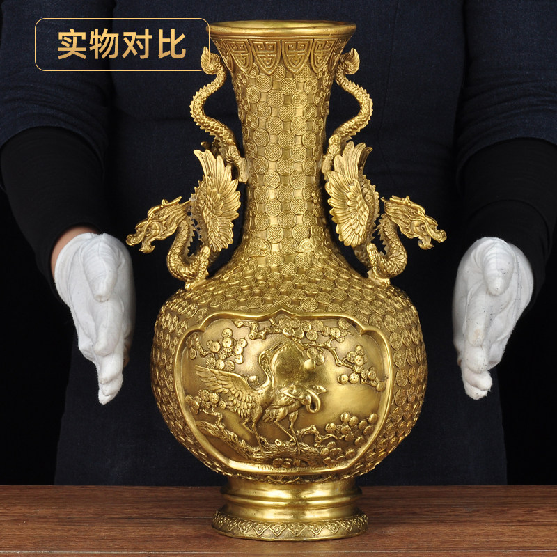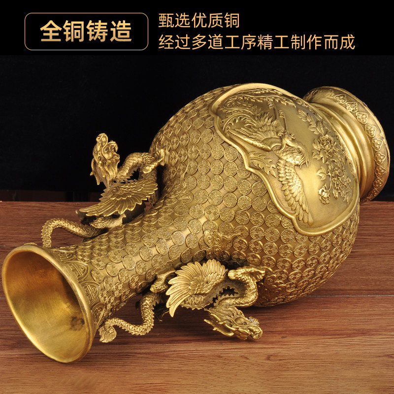 全铜双龙花瓶摆件大号铜花瓶家居客厅卧室玄关装饰品乔迁新居礼品