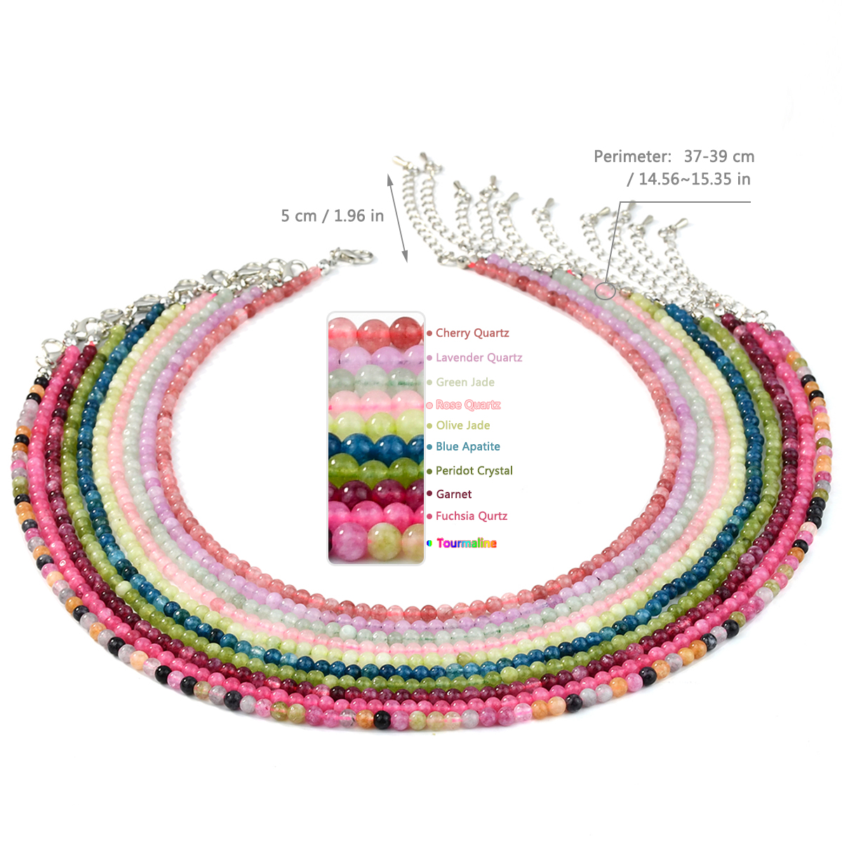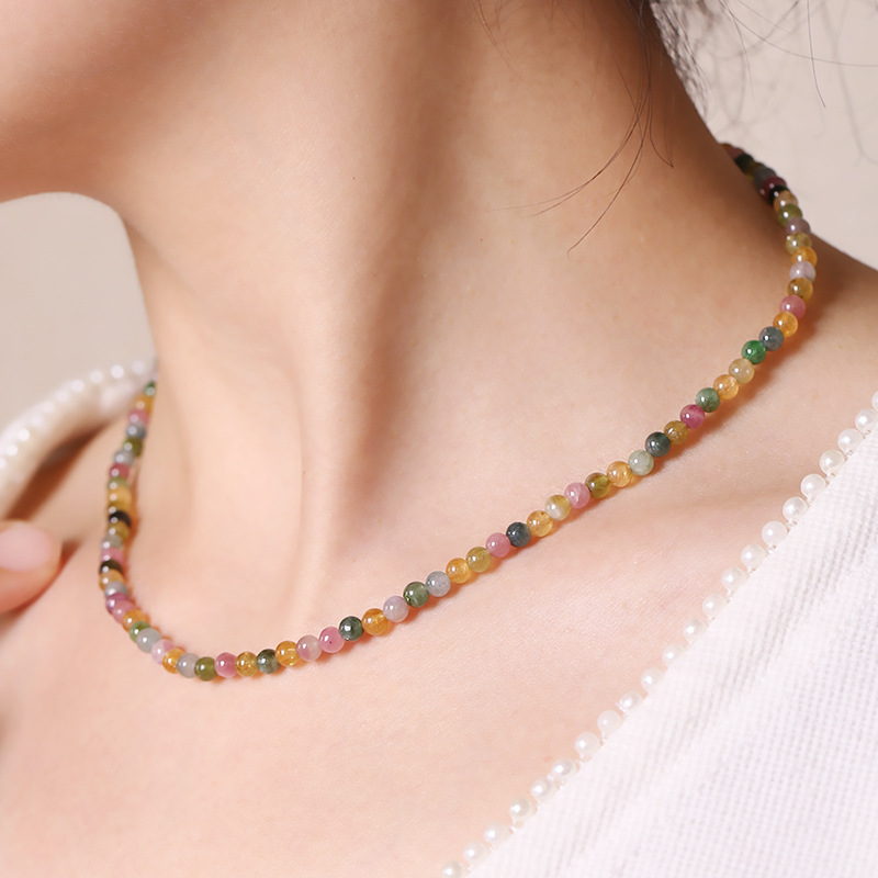 彩色多巴胺多宝石头串珠锁骨链女粉水晶碧玺小众彩虹糖果珠链项链