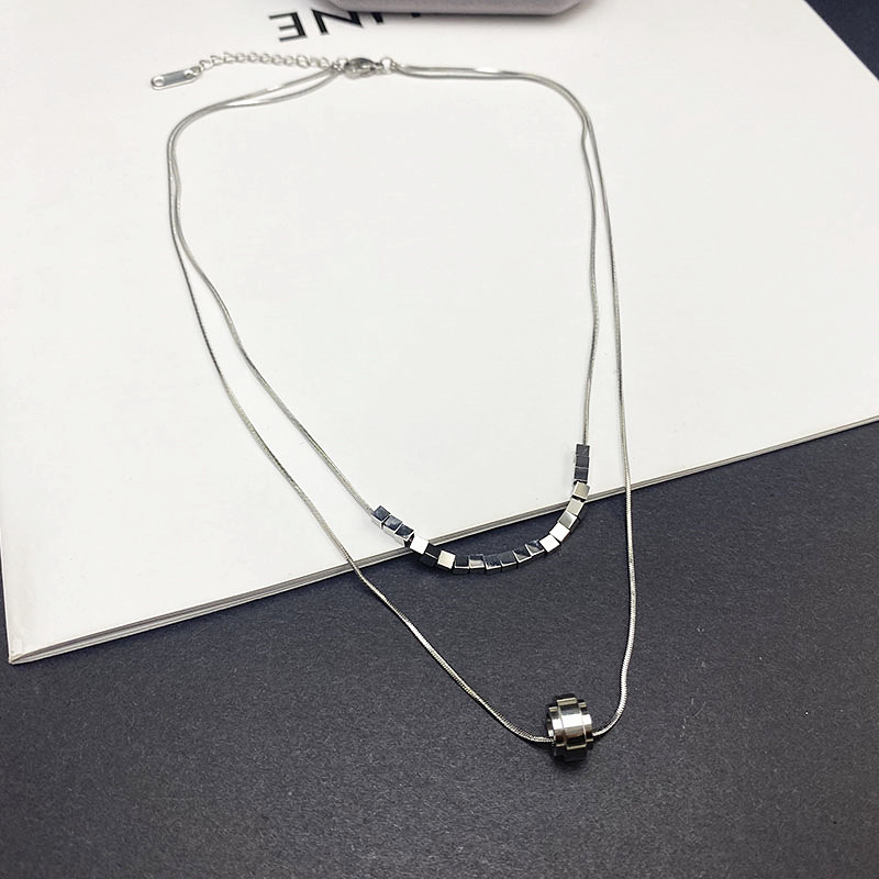 高级感小方块钛钢项链女2024新款爆款轻奢小众双层叠戴锁骨链颈链