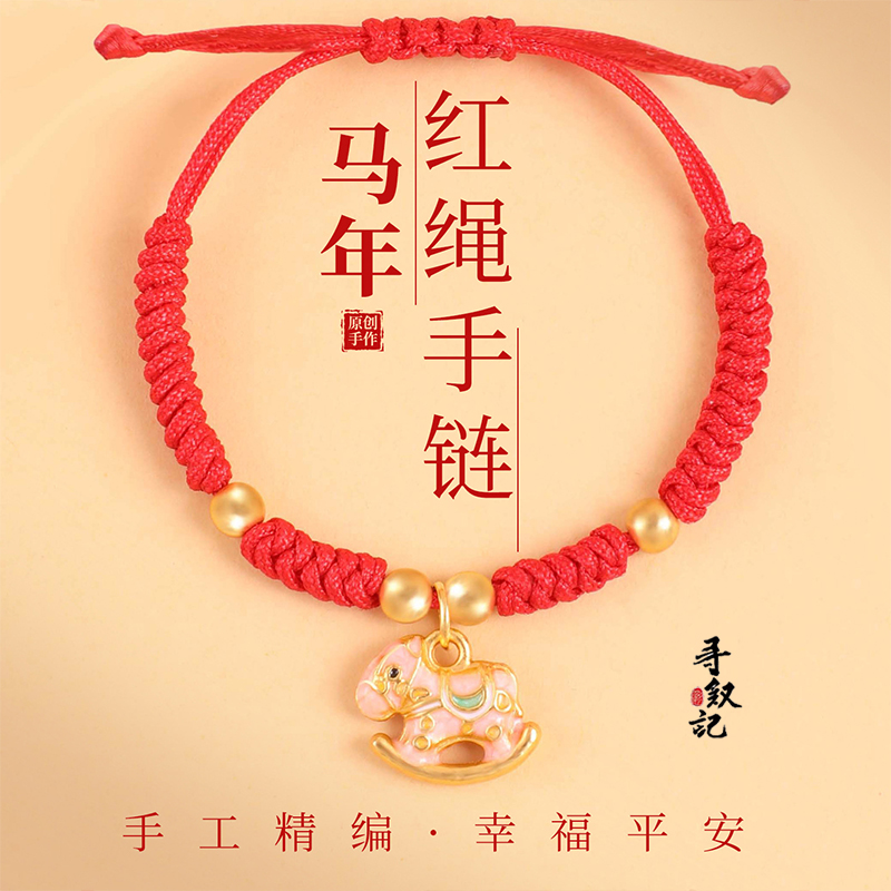 原创马本命年红绳手链diy手工编织手绳男女礼物手饰2026马年红绳