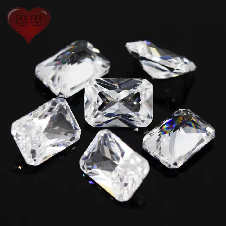 小八角12#白刚玉人造白蓝宝戒面裸石 长方倒角车花耐高温蜡镶珠宝