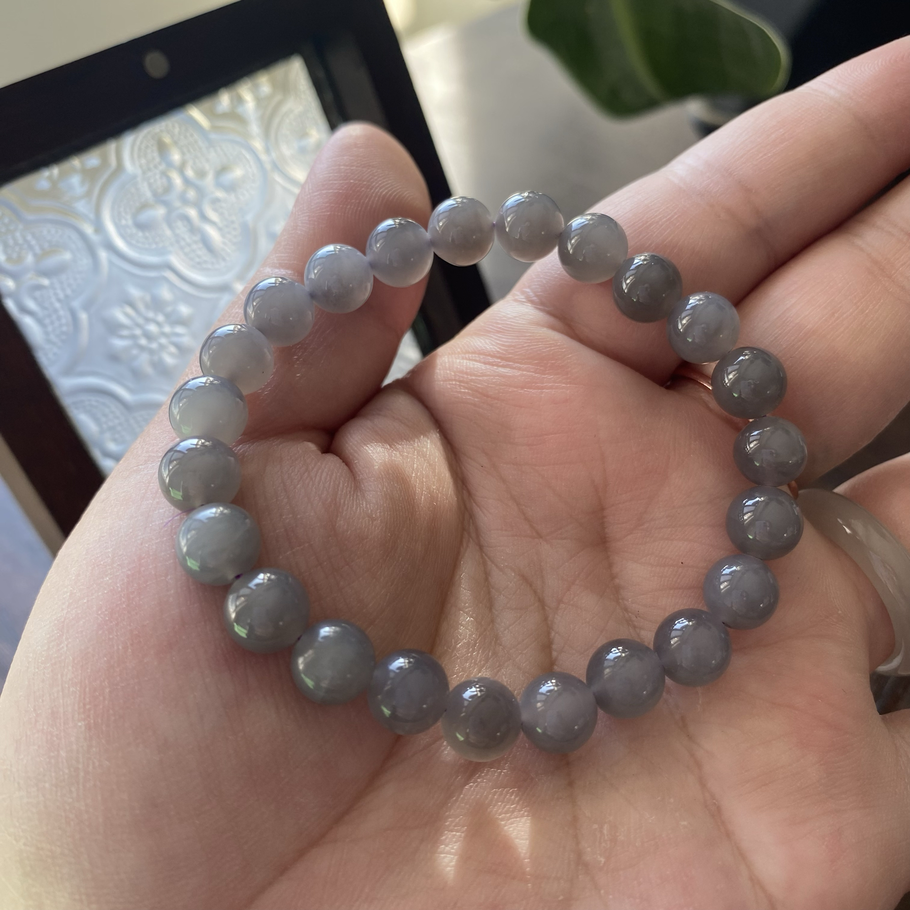 和田玉烟紫手串8mm包容棉裂同料多样性发