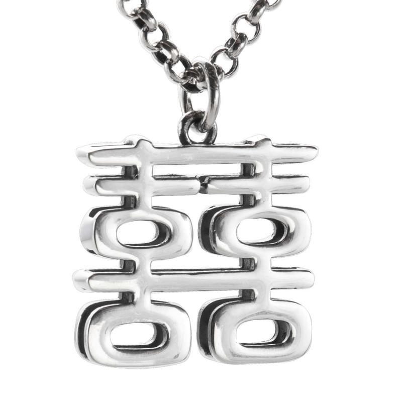 【好运】纯银双喜字吊坠项链长款毛衣链S925银复古女日进斗金泰银