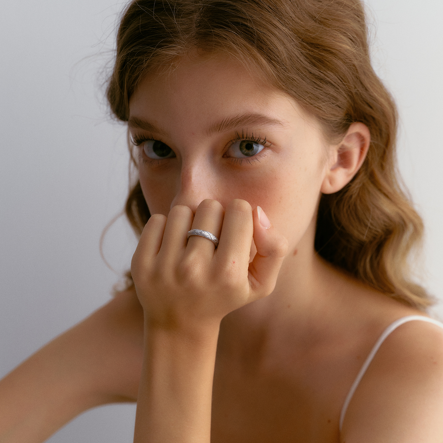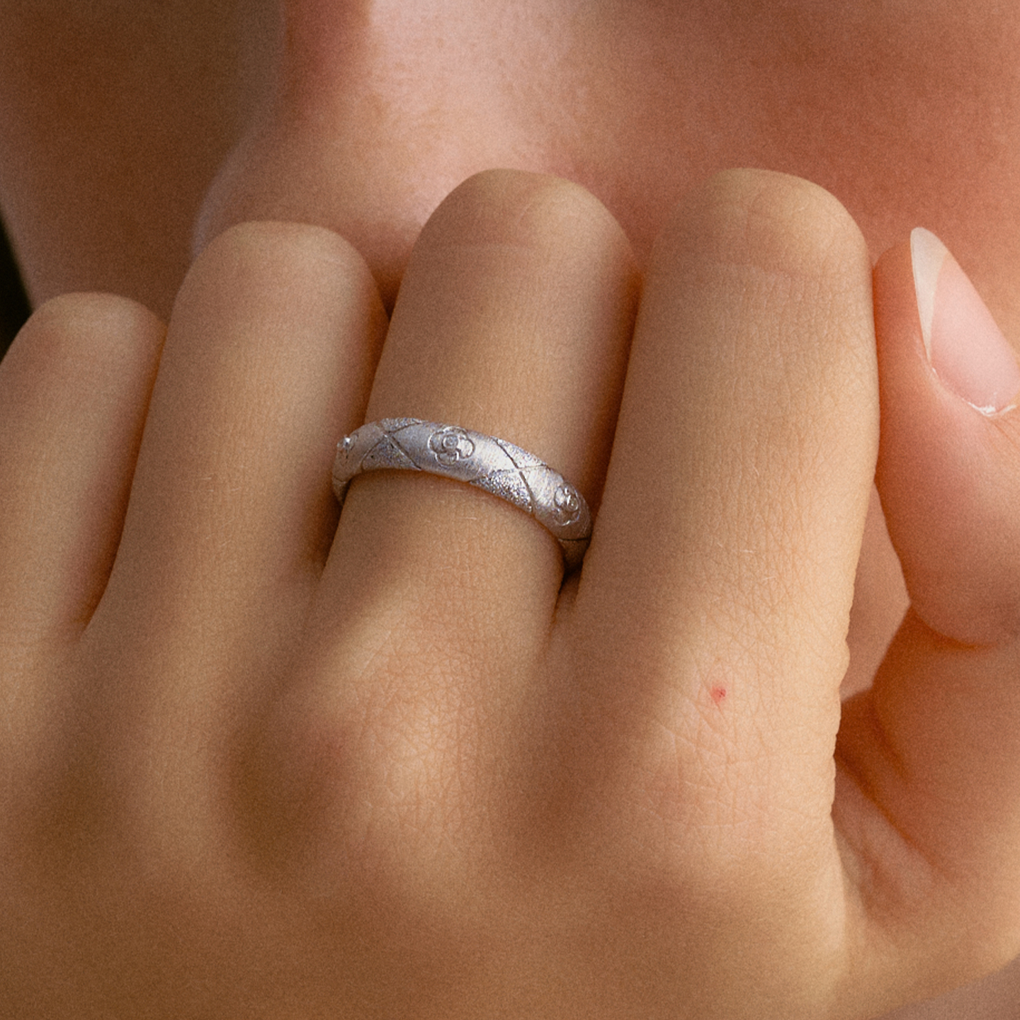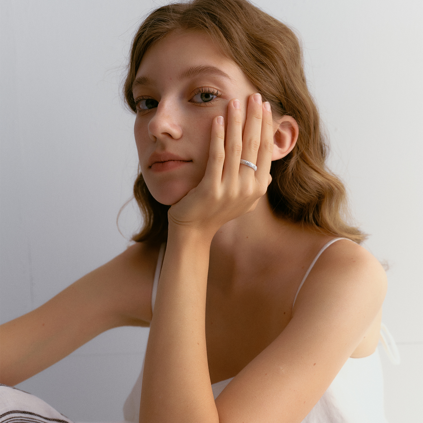 CINNLER「白山茶的香颂曲」菱格拉丝工艺925银设计感气质小众戒指