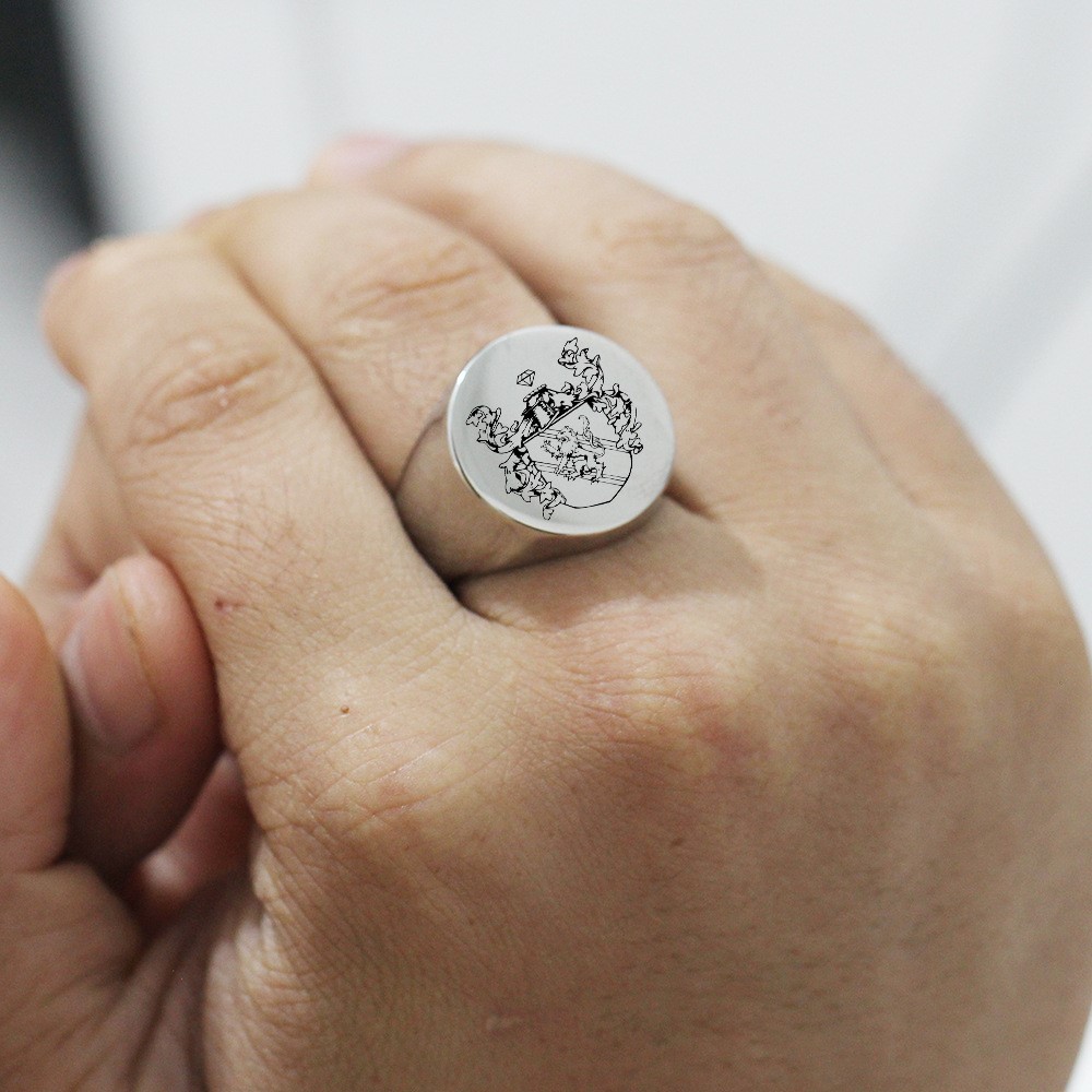 新款跨境创意不锈钢圆形光面激光个性狮王壶托钻戒指22MM光面指环