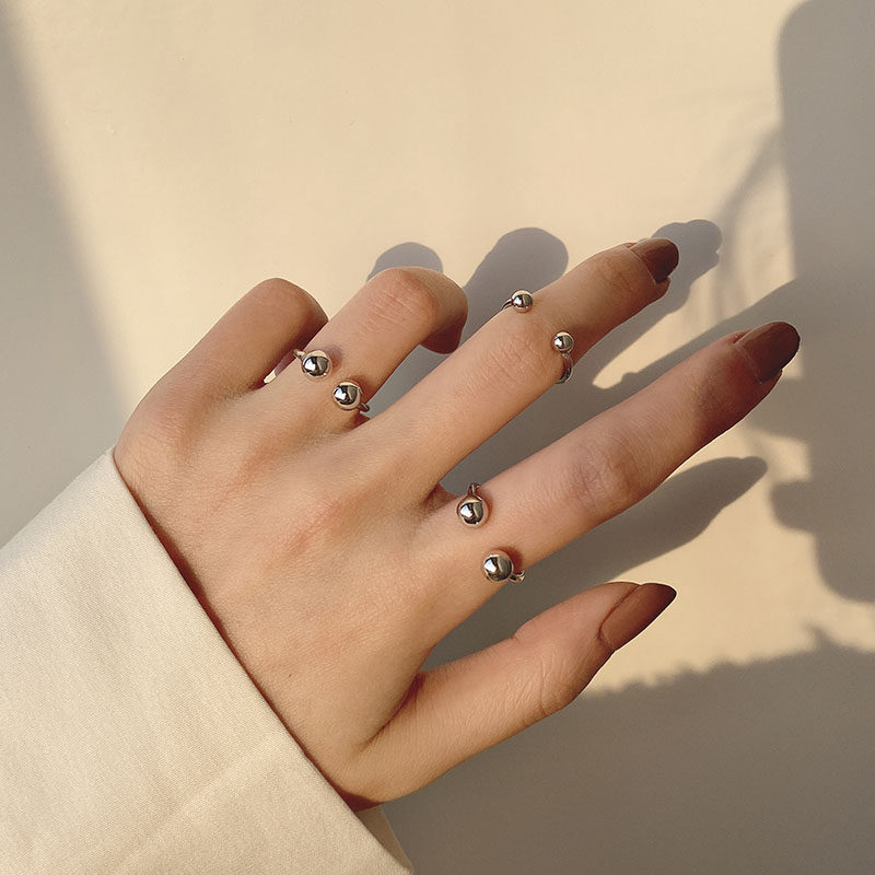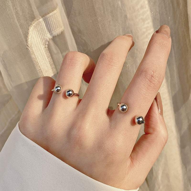 当前位置:首页>商品详情>双球关节开口戒指s925纯银简约可调节指环个性冷淡风素圈尾戒女