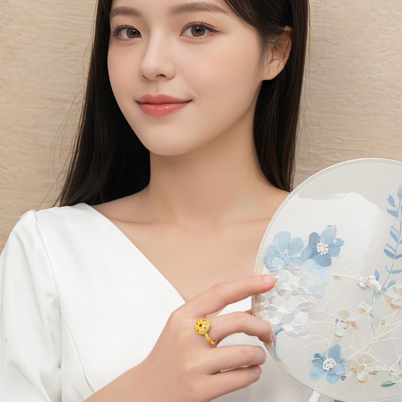 【剩1件】诗普琳 灵转八宝罗盘足金999 珐琅戒指送母亲女友送礼