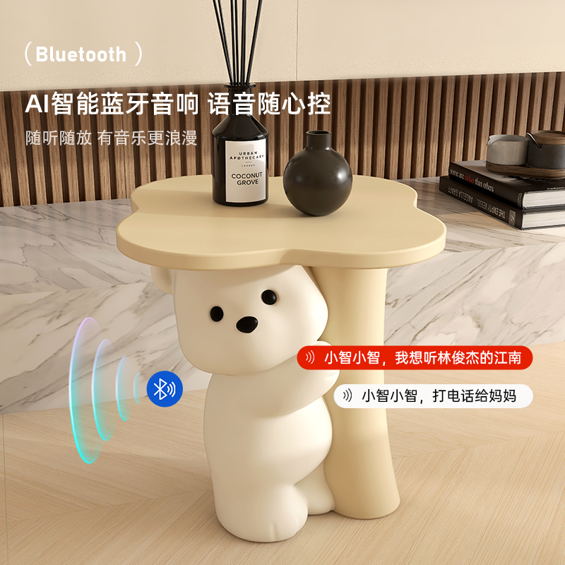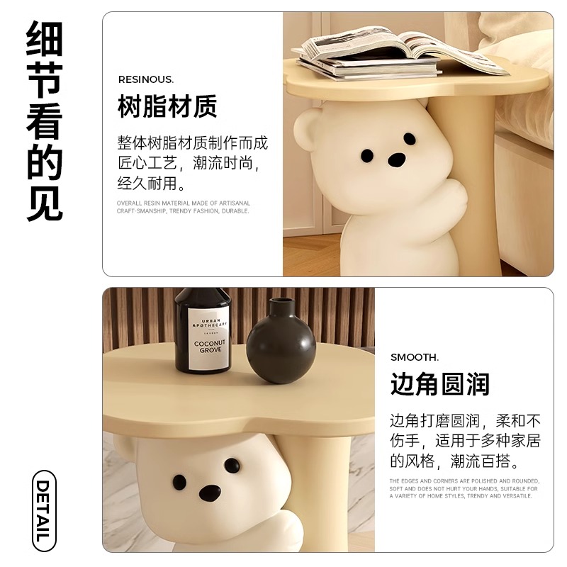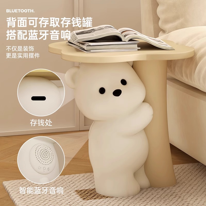 创意可爱小熊边几摆件客厅大型落地床头柜奶油风茶几新婚乔迁礼物
