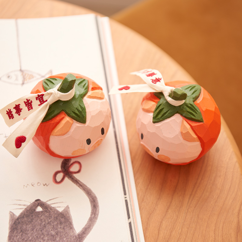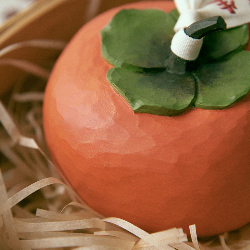 柿子木雕摆件创意可爱实木手工装饰礼品桌面车载节日祈福木作男女