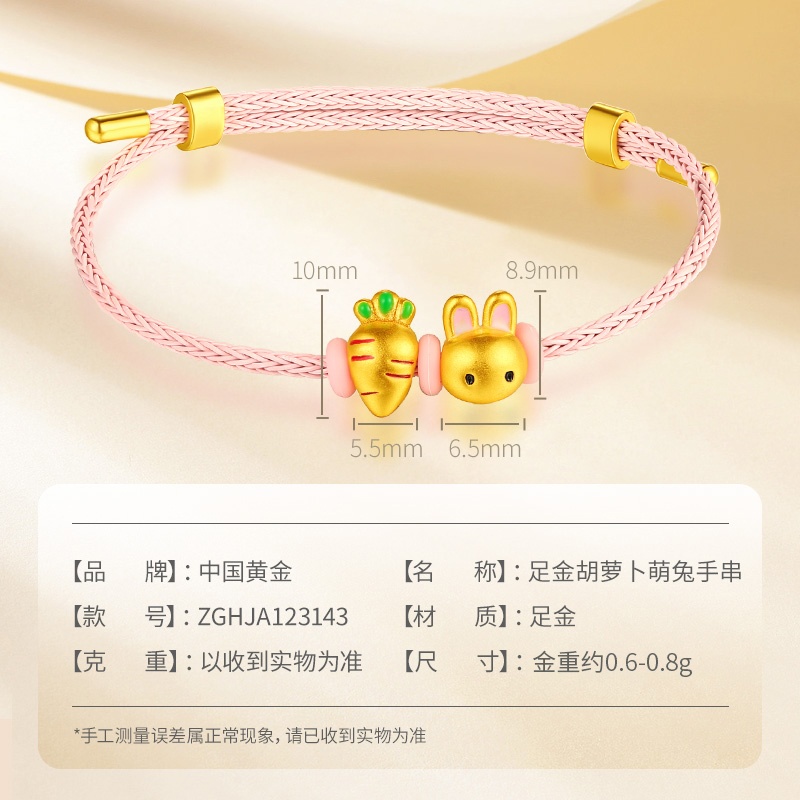 中国黄金足金小兔子手绳女黄金转运珠手链生肖兔手串精致编绳