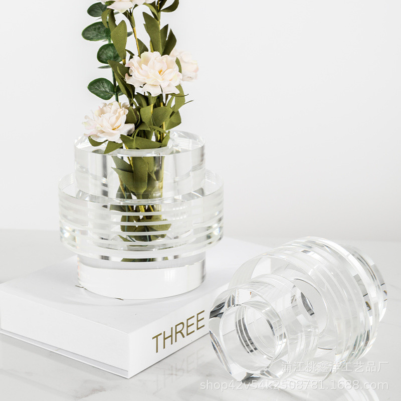热销现代销售白色条纹圆柱花器轻奢中心售楼部样板房客厅民宿工艺
