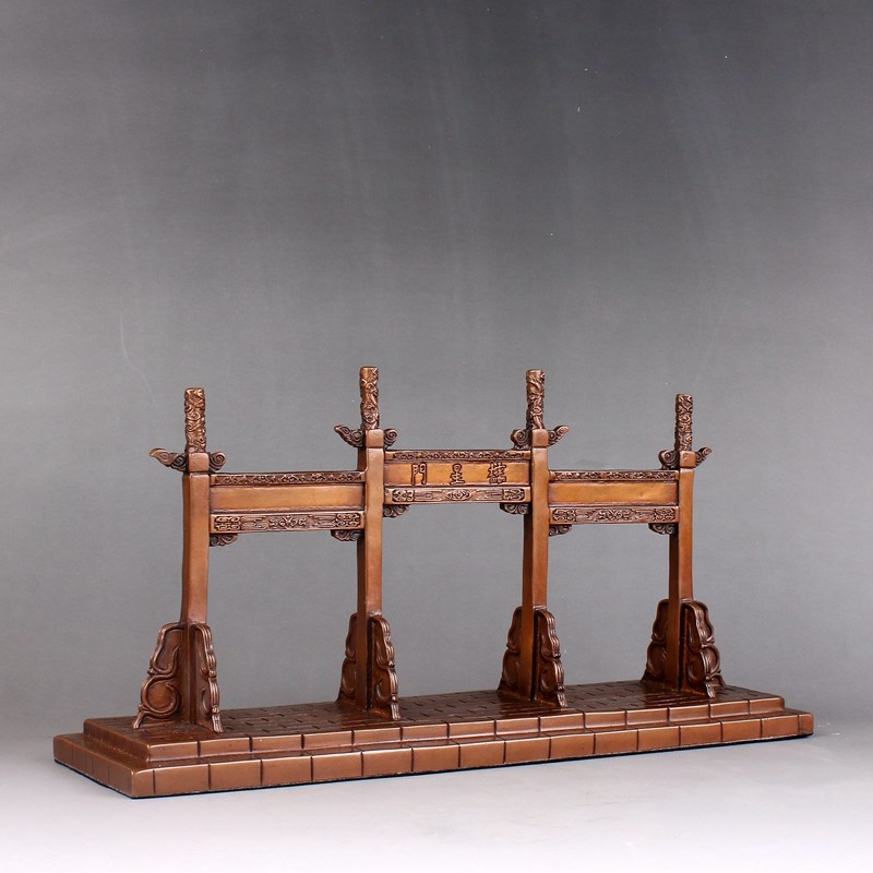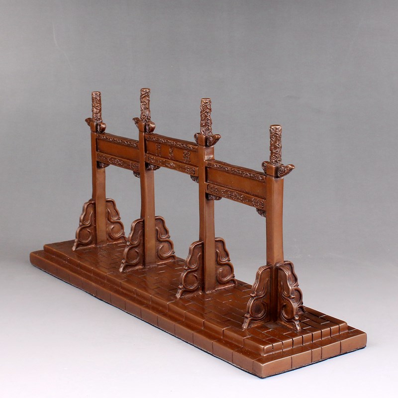 紫铜棂星门摆件大毛笔架笔搁仿古建筑牌坊式O文房家居装饰客厅礼