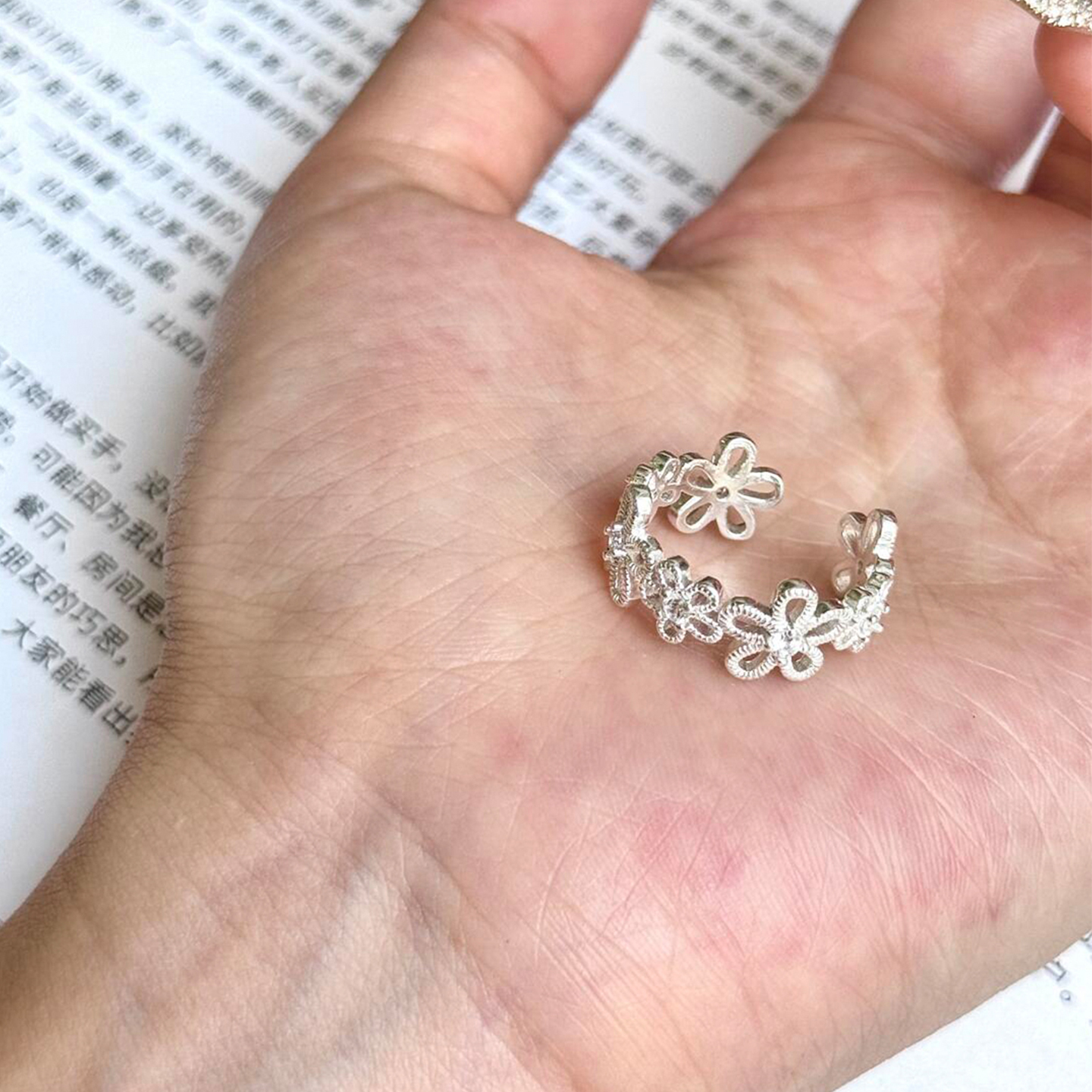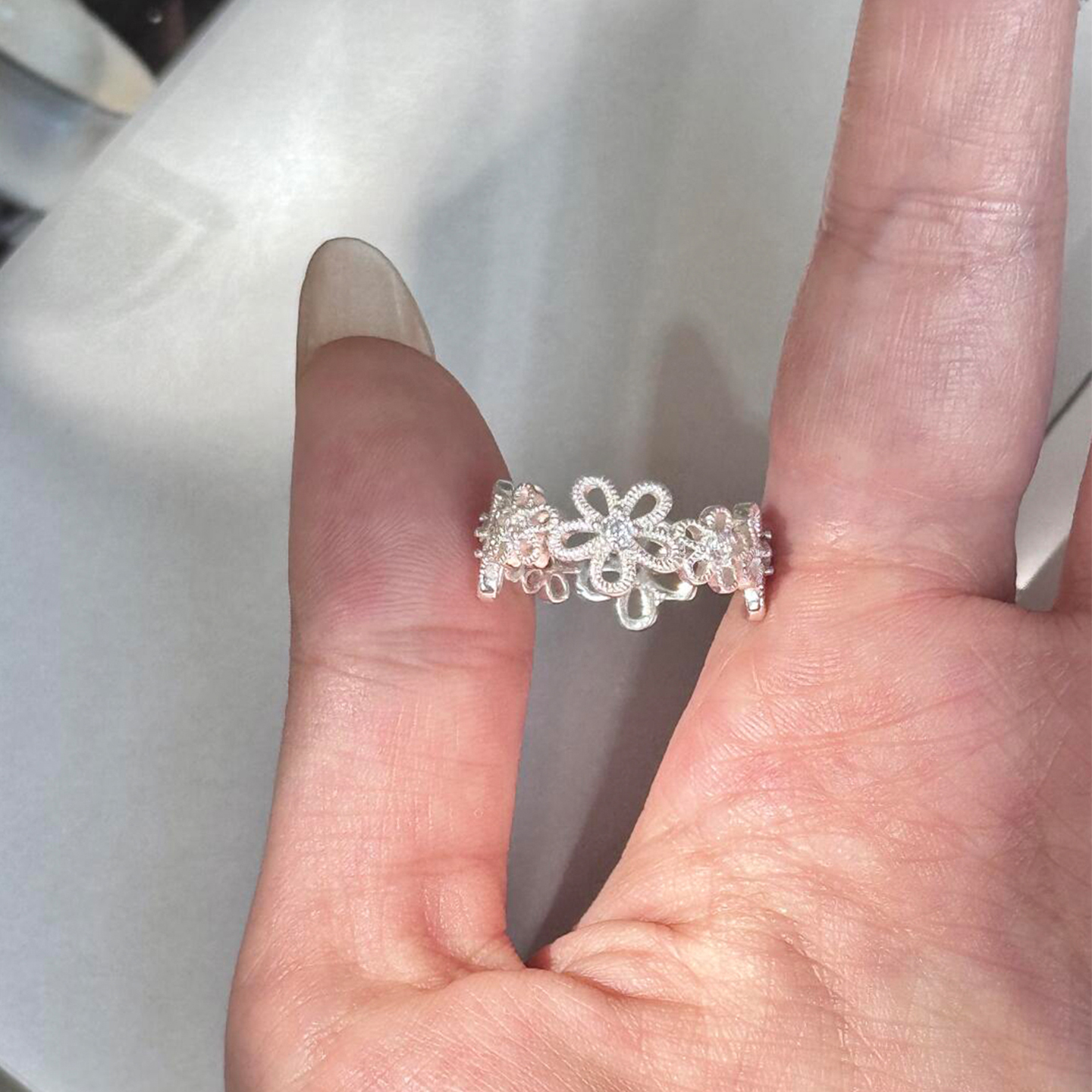 镂空花朵戒指女小众设计轻奢高级感甜美微镶仿闪钻食指戒气质指环