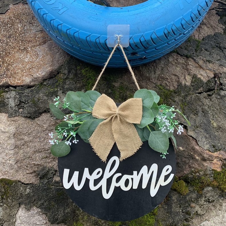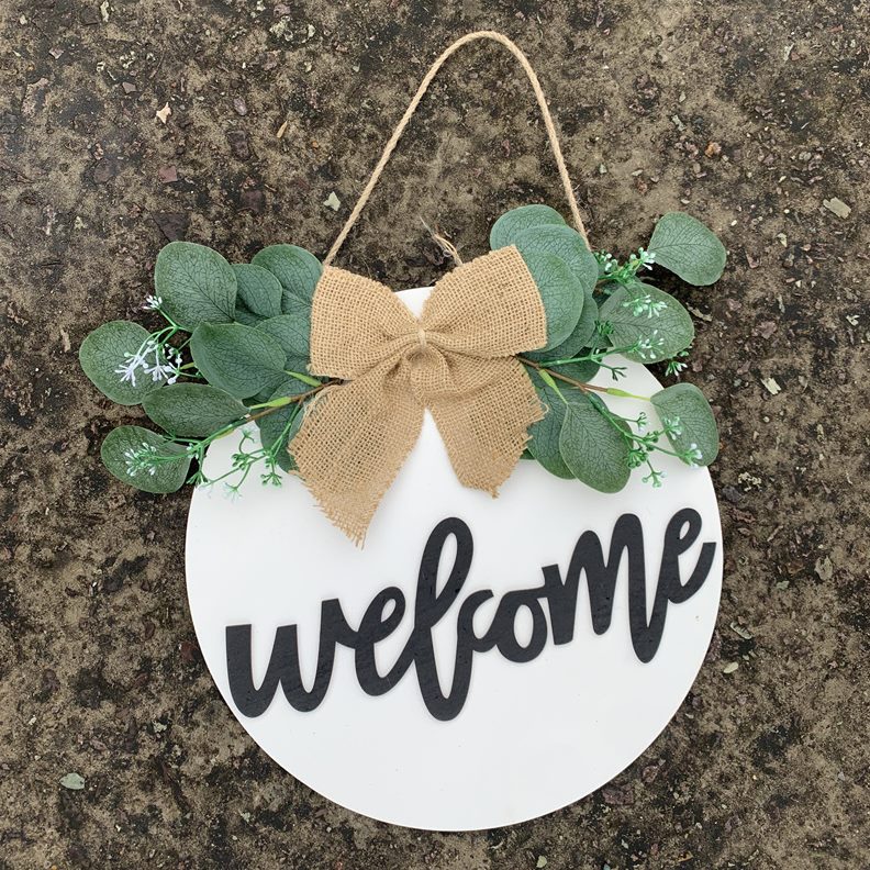 甄选乡村风hello前门装饰未完成的圆形欢迎木质挂牌 木制悬挂门牌
