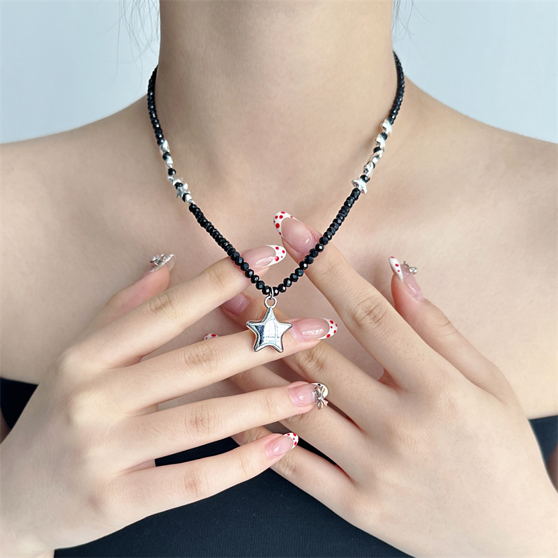 简约黑色串珠星星项链配饰女款锁骨链精致高级感轻奢小众颈链饰品
