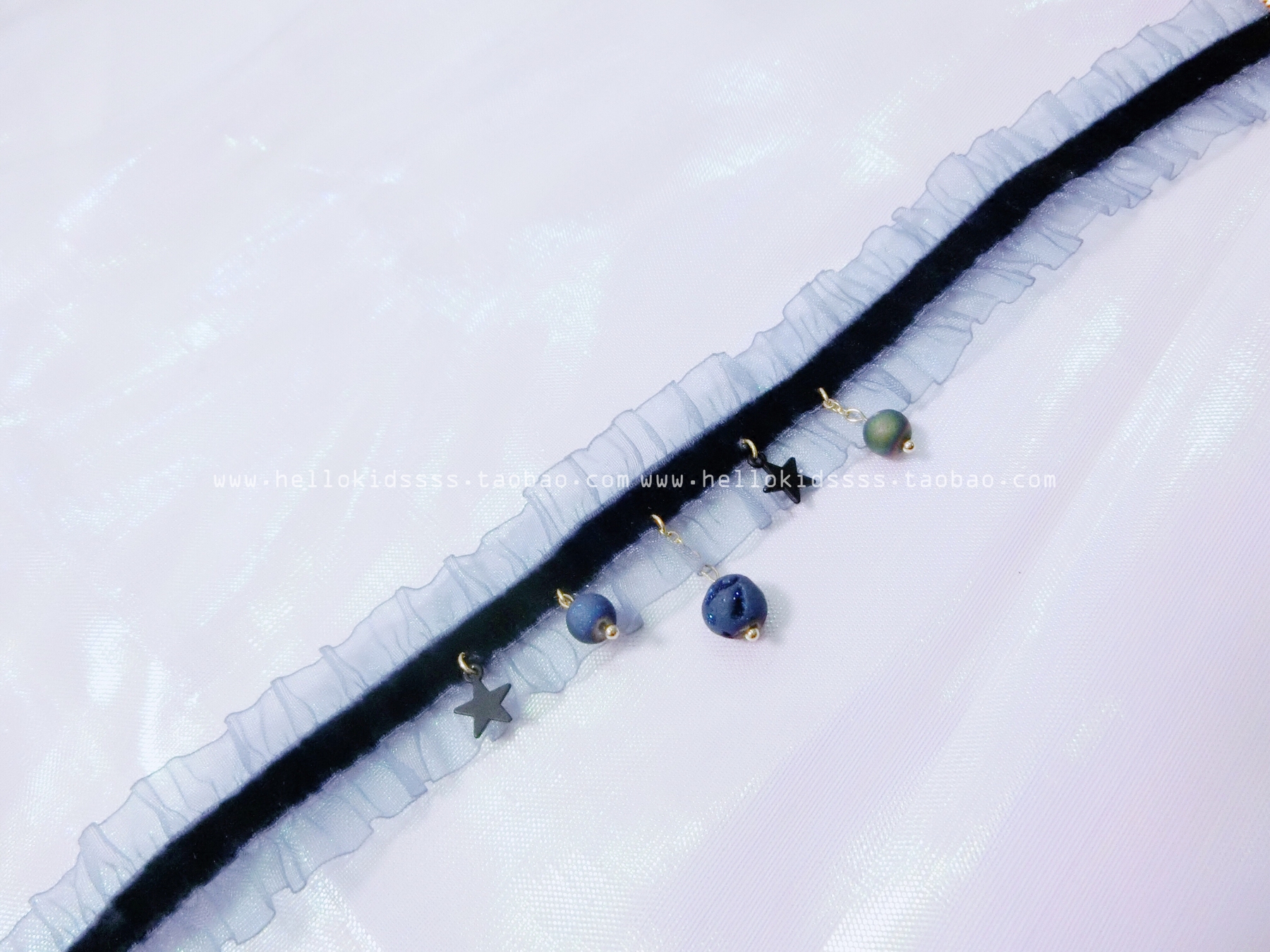 星球 星星天然水晶复古小众气质蓝色丝绒花边项圈choker