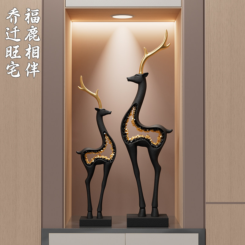 招财鹿入户玄关摆件轻奢高档办公室客厅电视柜装饰品乔迁新居礼物