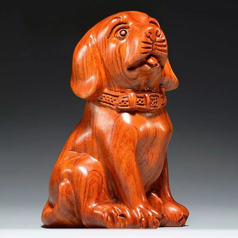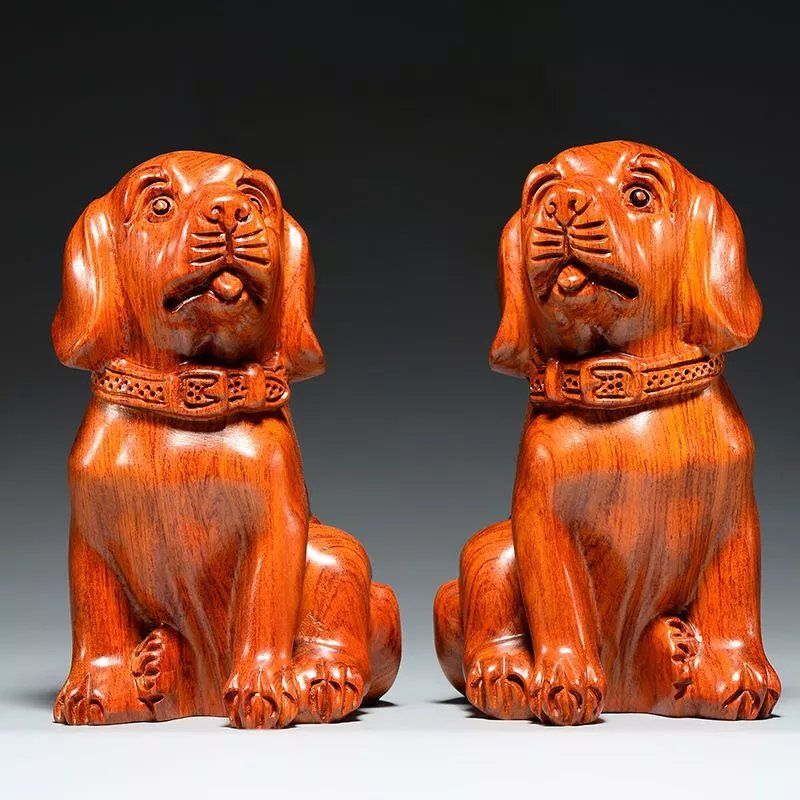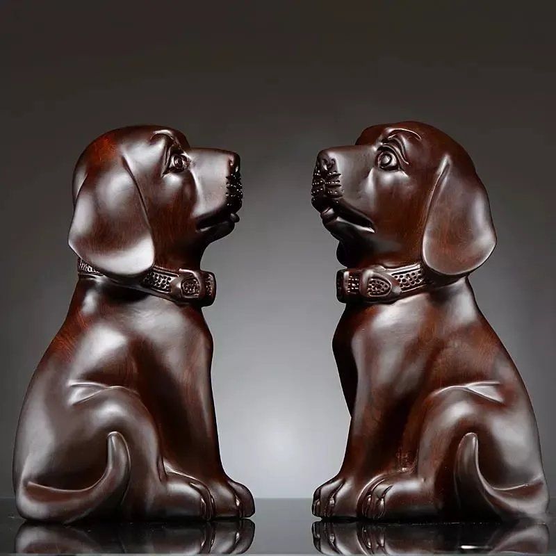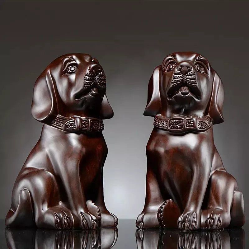 黑檀木雕狗摆件对狗狗大号旺财狗花梨实木雕刻风水十二生肖狗