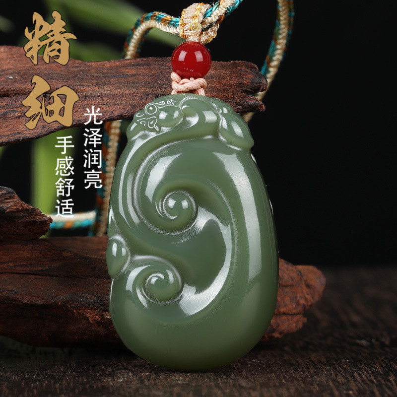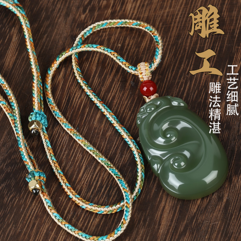 唐今玉和田玉湖水绿大号如意吊坠项链冰种玉佩男女情侣玉石如意挂