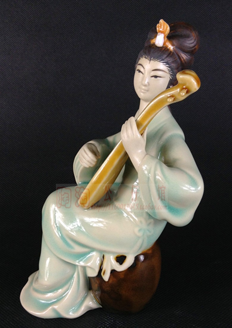 陶瓷工艺品石湾公仔家居装饰品礼品客厅桌面小摆件仕女弹琵琶促销