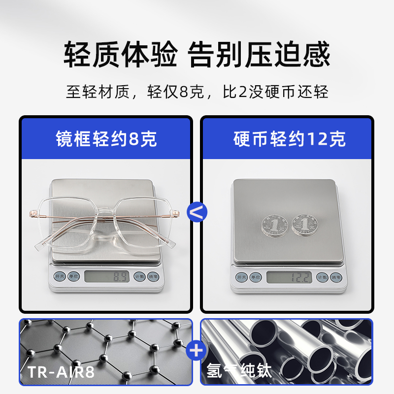 超轻透明眼镜框镜架女纯钛大框大脸显瘦镜框可配度数镜片近视眼镜