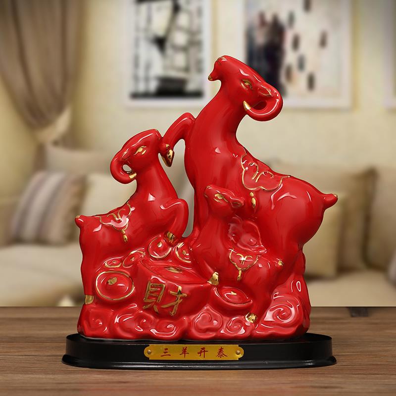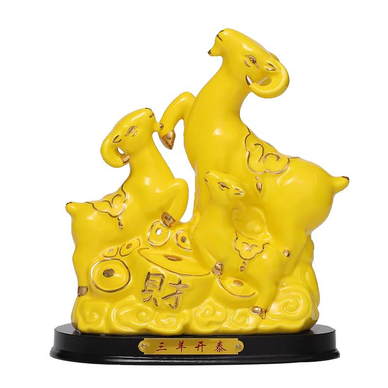 陶瓷三羊开泰羊摆件黄色招财补角家居风水客厅三阳开泰陶瓷工艺品