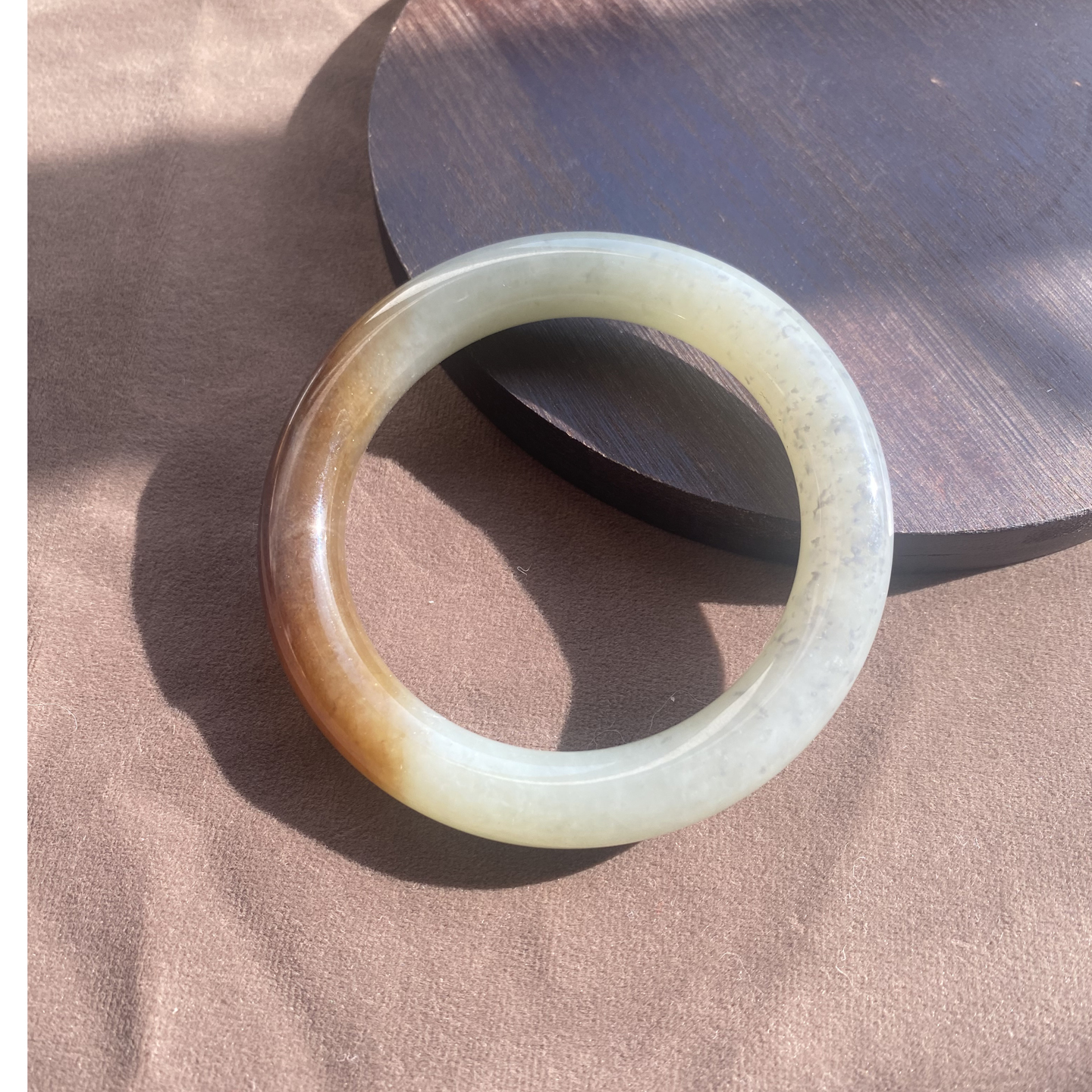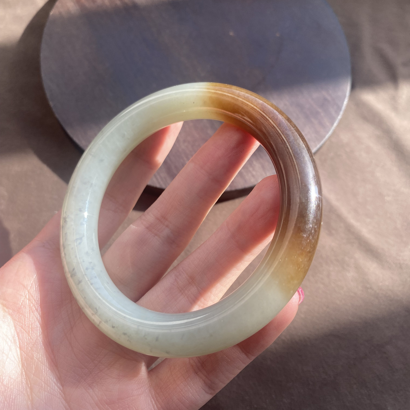 震惊了方言和田玉新疆且末料糖白玉带点墨青花内径57mm精美手镯A2