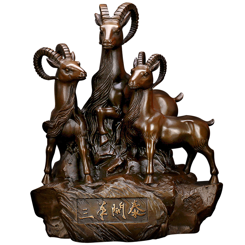 徽匠铜韵 三羊开泰摆件黄铜铜羊办公室风水招财开业礼品三阳开泰